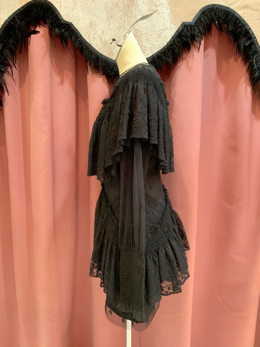 lace one-piece レース シースルー フリル ティアード アシンメトリー パーティー ドレス ワンピース