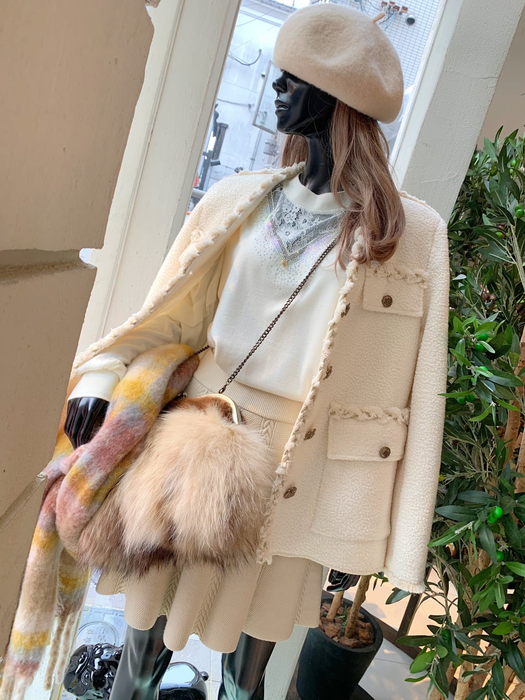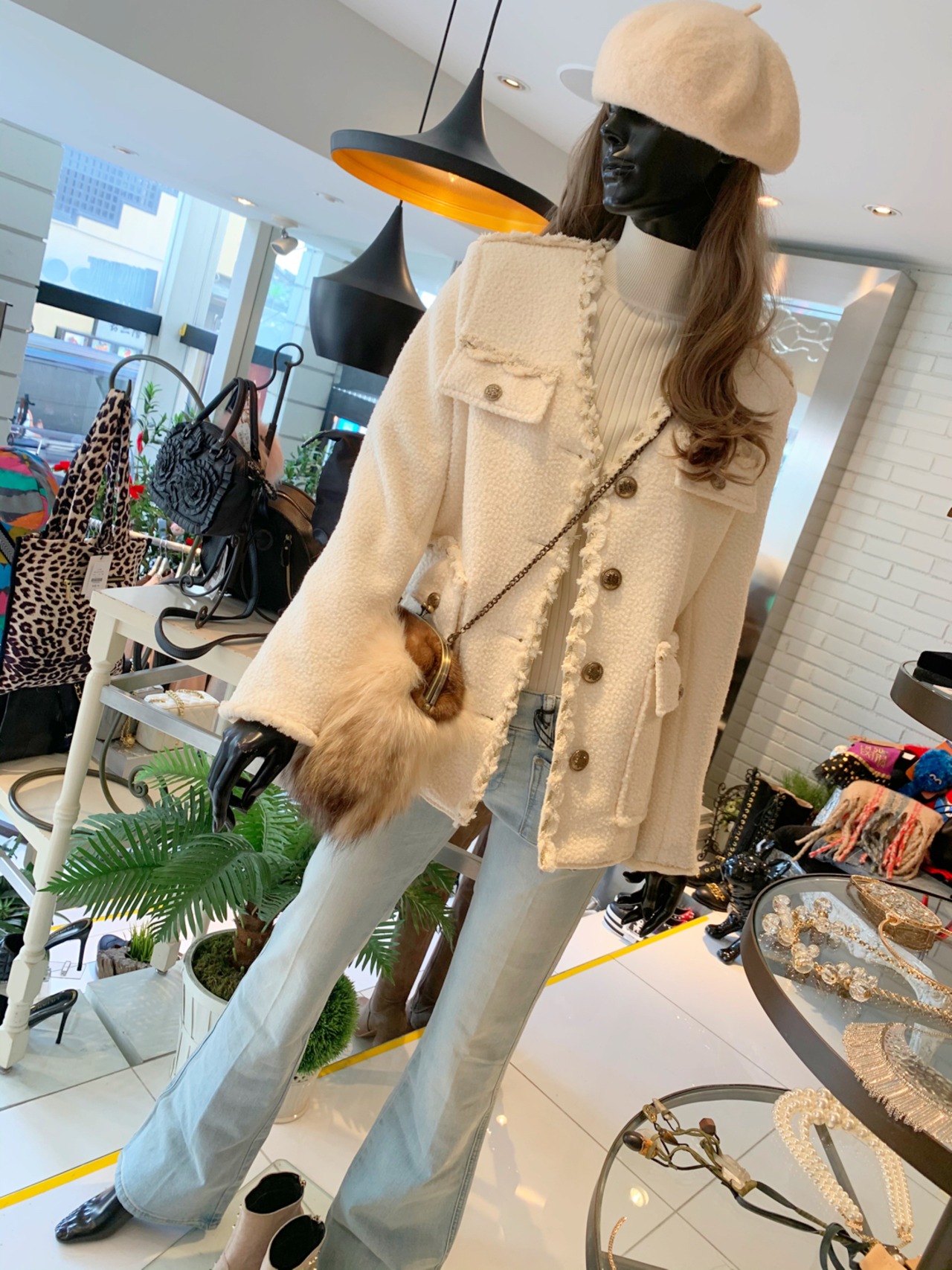 jacket ボア ツイード ジャケット アウター ノーカラー オーバー ビッグ シルエット