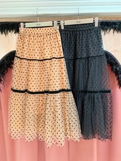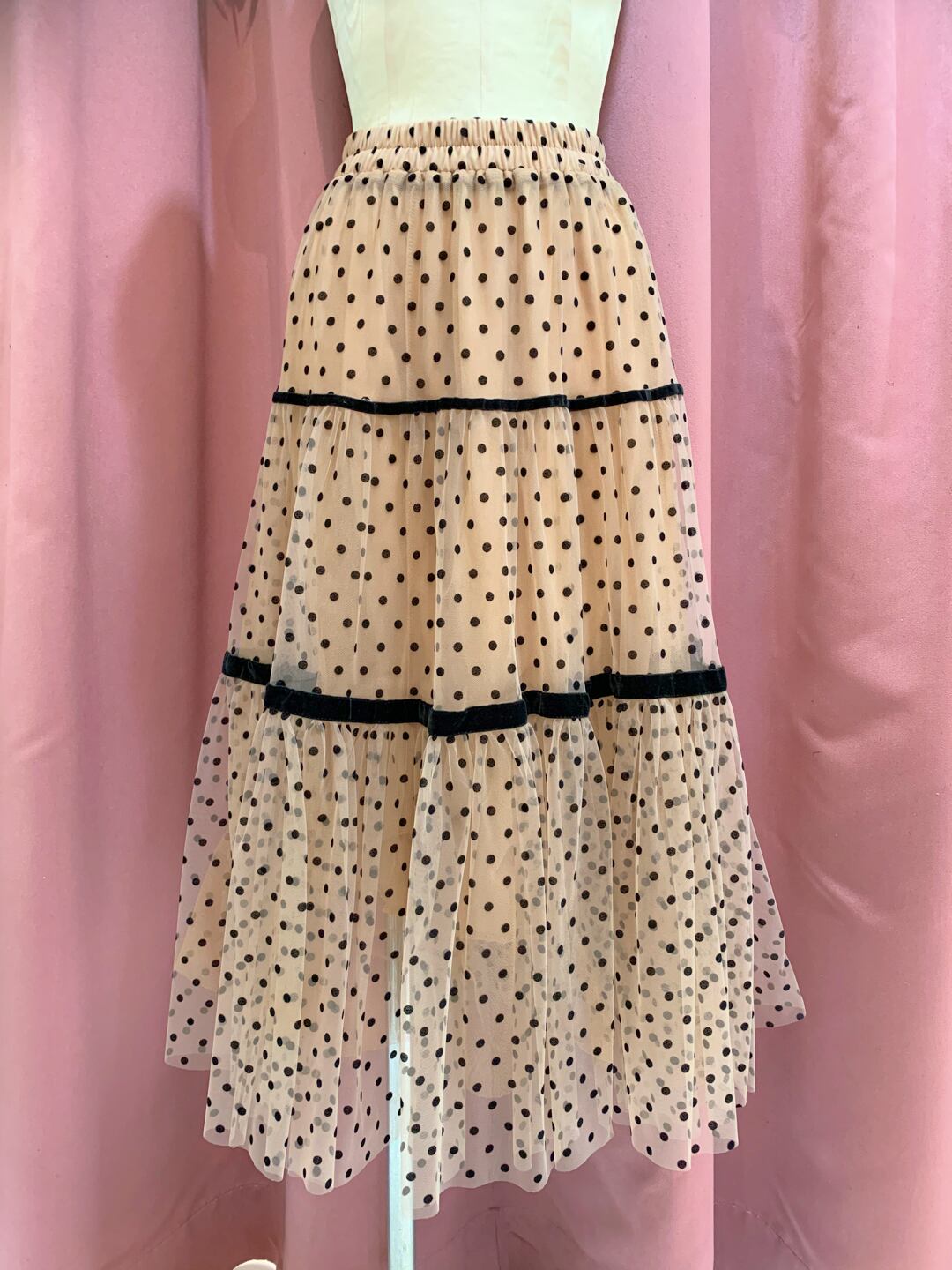 dot tulle skirt ドット柄 チュール フレア ロング スカート ベロア ライン フレア