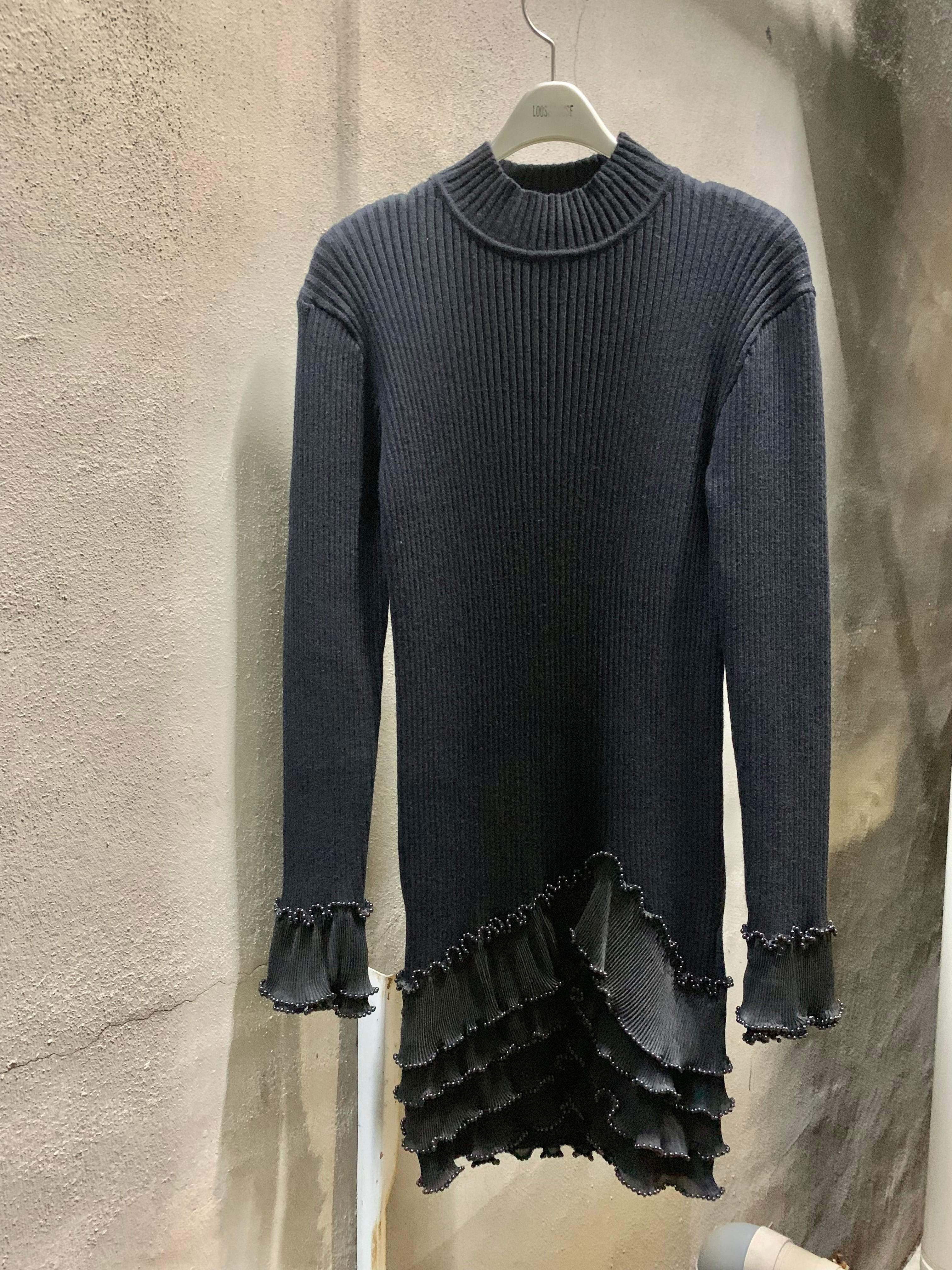 design knit one-piece ニット ワンピース ニットワンピース ミニワンピ フリル ビーズ パール デザインニット おしゃれ かわいい インポート