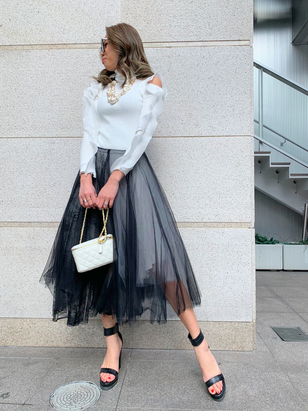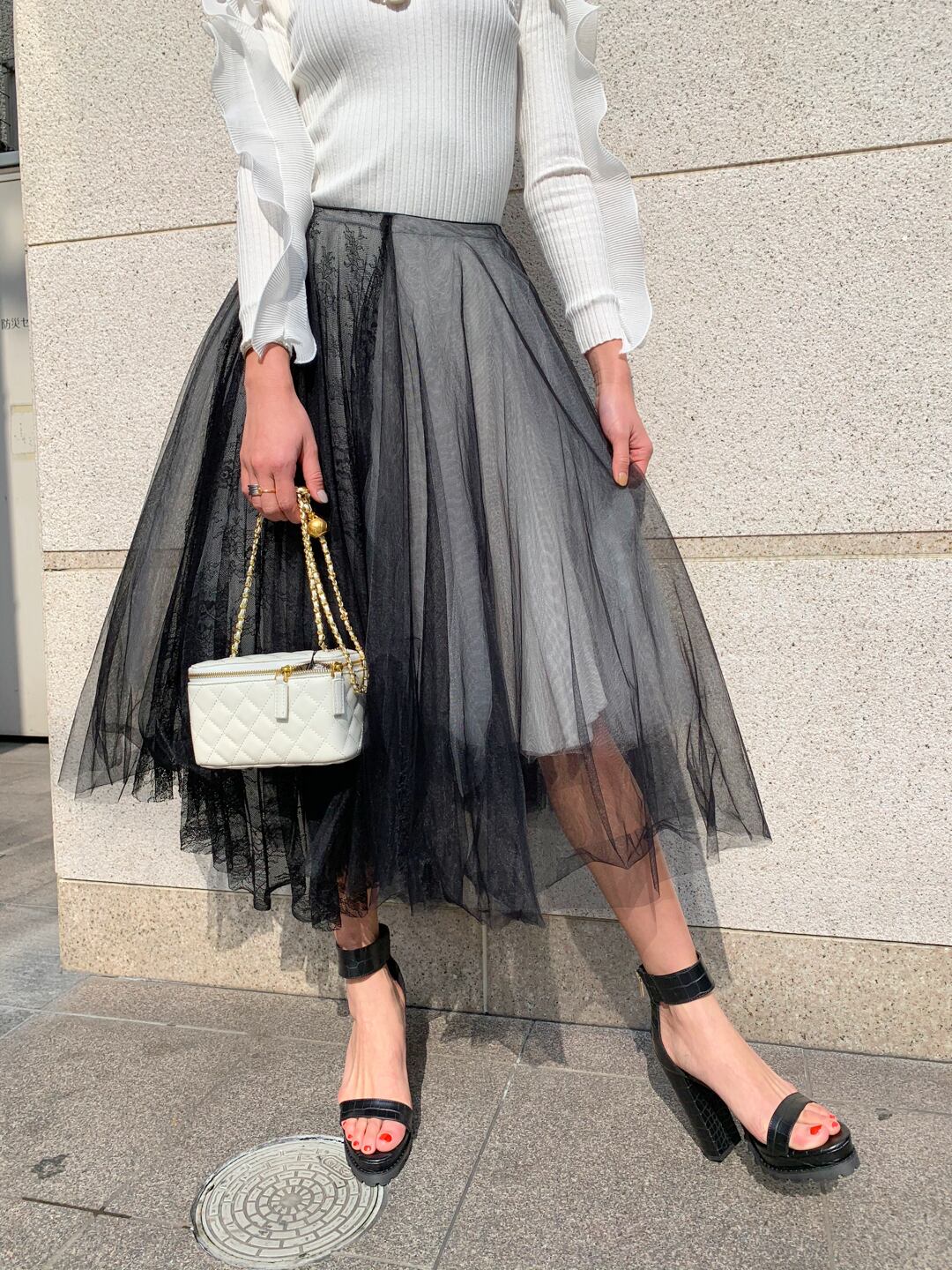 tulle skirt チュール スカート ボリューム ボリューミー フレア レース ドレス パーティー Party 配色 ロング ふわふわ