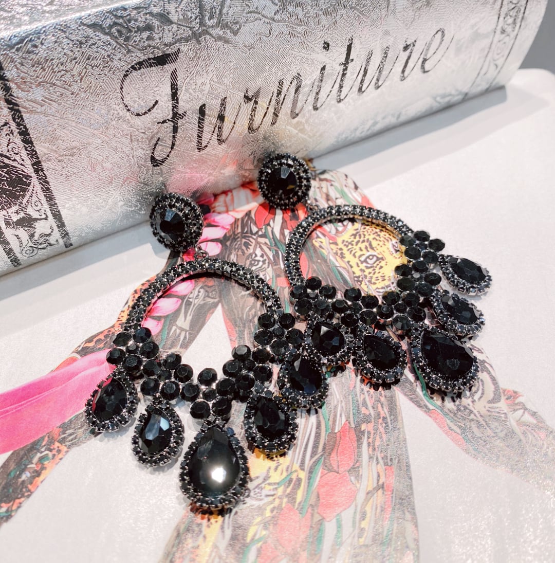 stone fringe pierce フリンジ ストーン ピアス フラワー ブラック アクセサリー