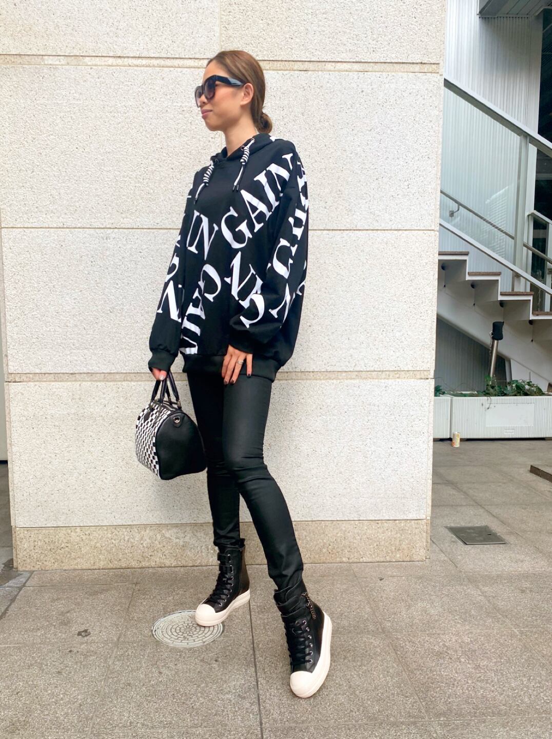 ゆったりめシルエットのフーディーは