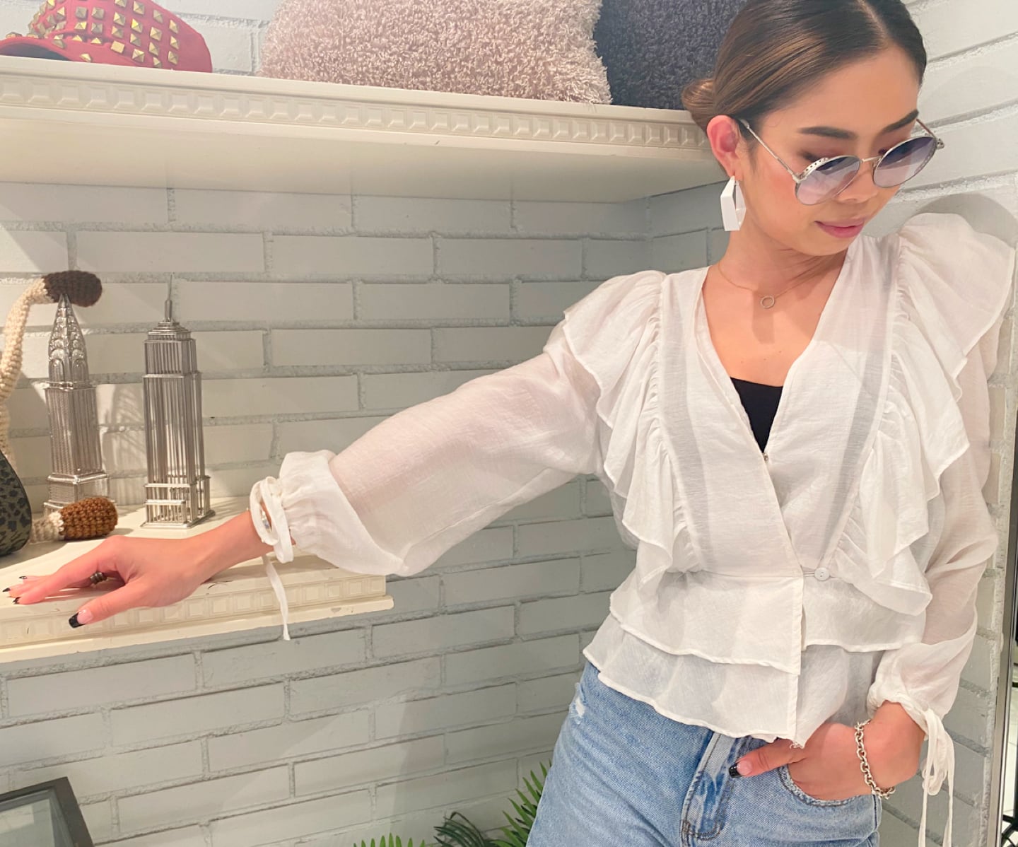frill design tops トップス ブラウス シャツ フリル 前開き リボン