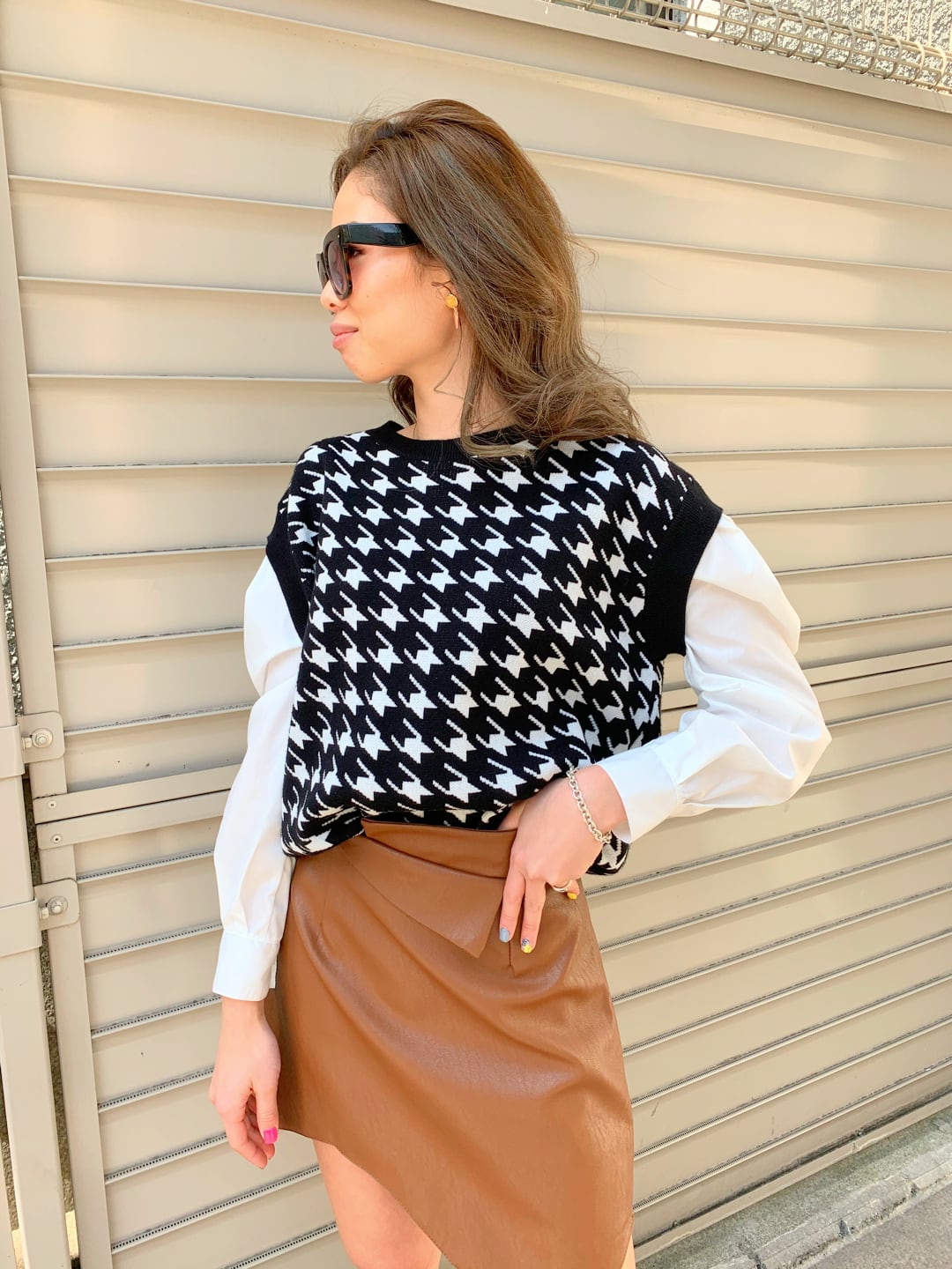docking tops トップス シャツ ドッキング 千鳥柄 ニット 切替 春 春コーデ インポート