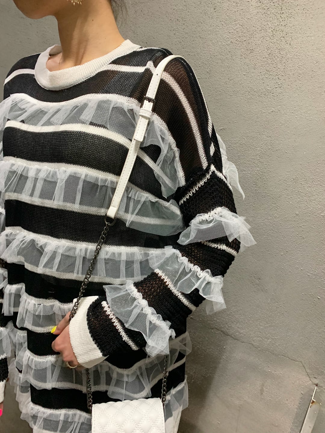tulle frill border mesh knit one-piece チュール フリル ボーダー メッシュニット ボーダートップス チュールデザイン