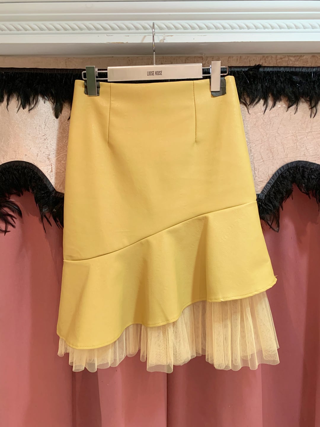 leather frill skirt レザー スカート 合皮 フリル チュール