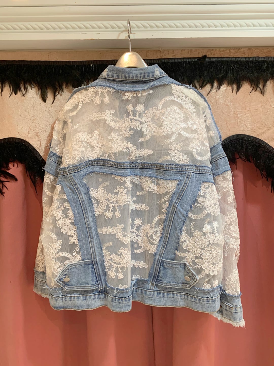 lace×denim jacket デニムジャケット デニム ジャケット レース 切替 春物新作 インポート