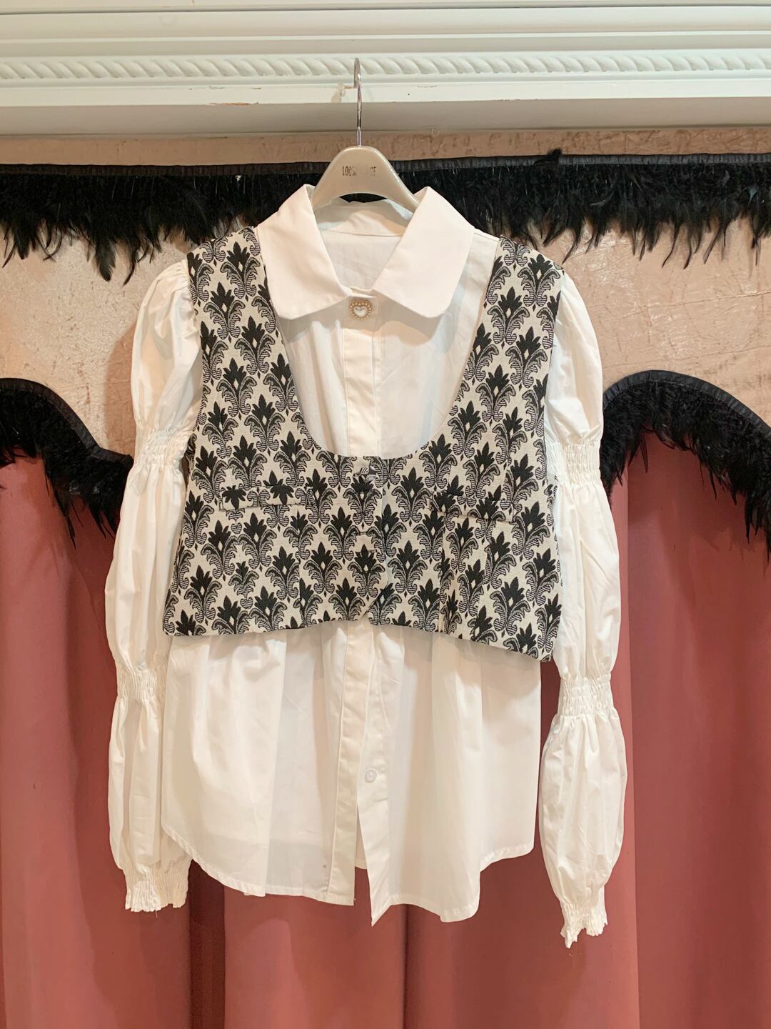 デザイン・シャツとダマスク柄ベストの2点セットアイテムです。