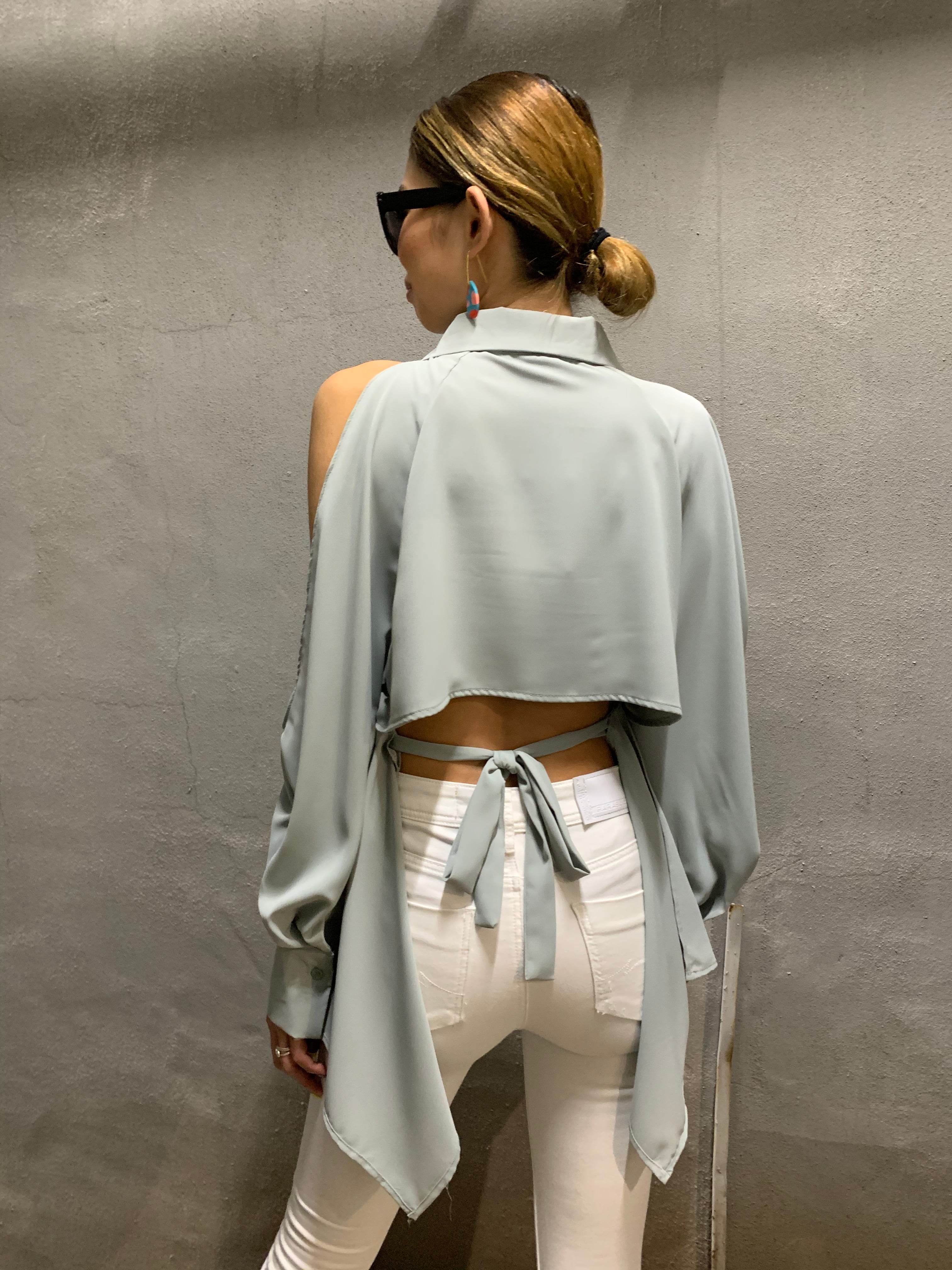 asymmetry sleeve shirt アシンメトリースリーブ シャツ ブラウス リボンシャツ