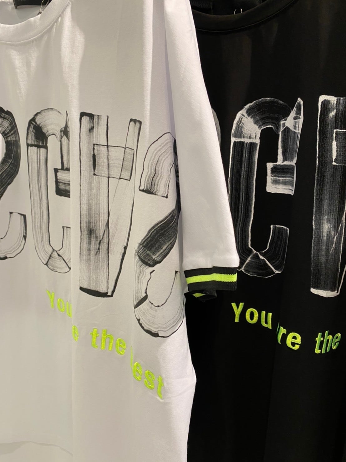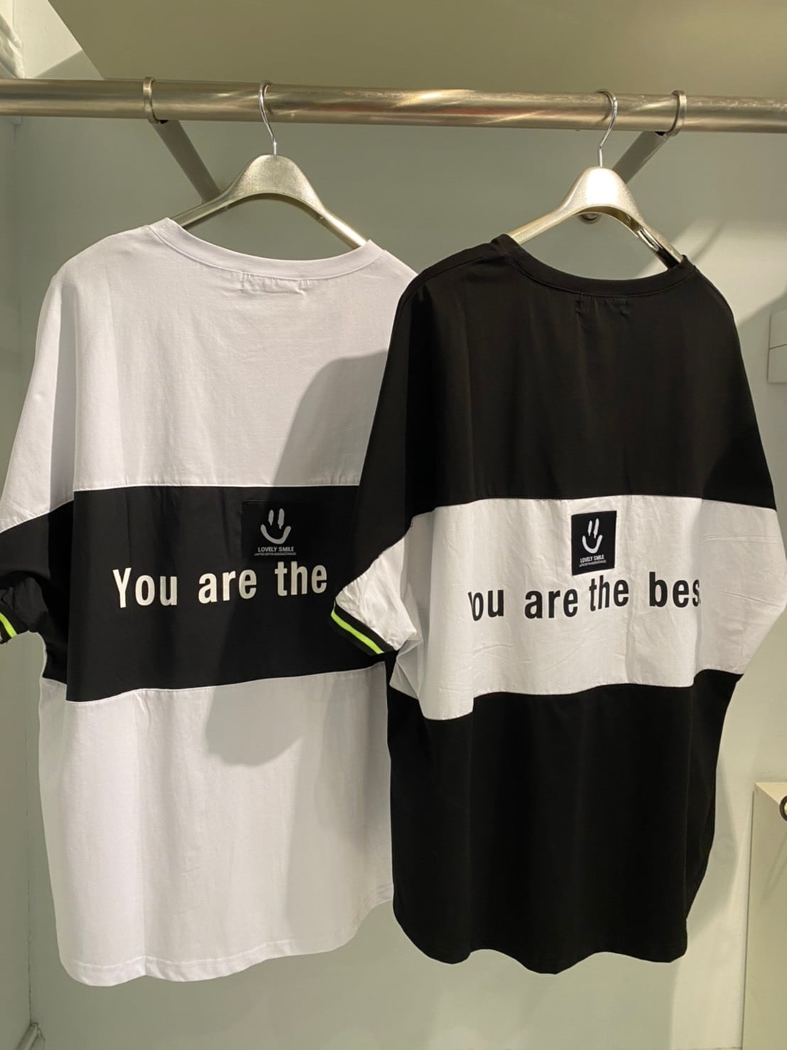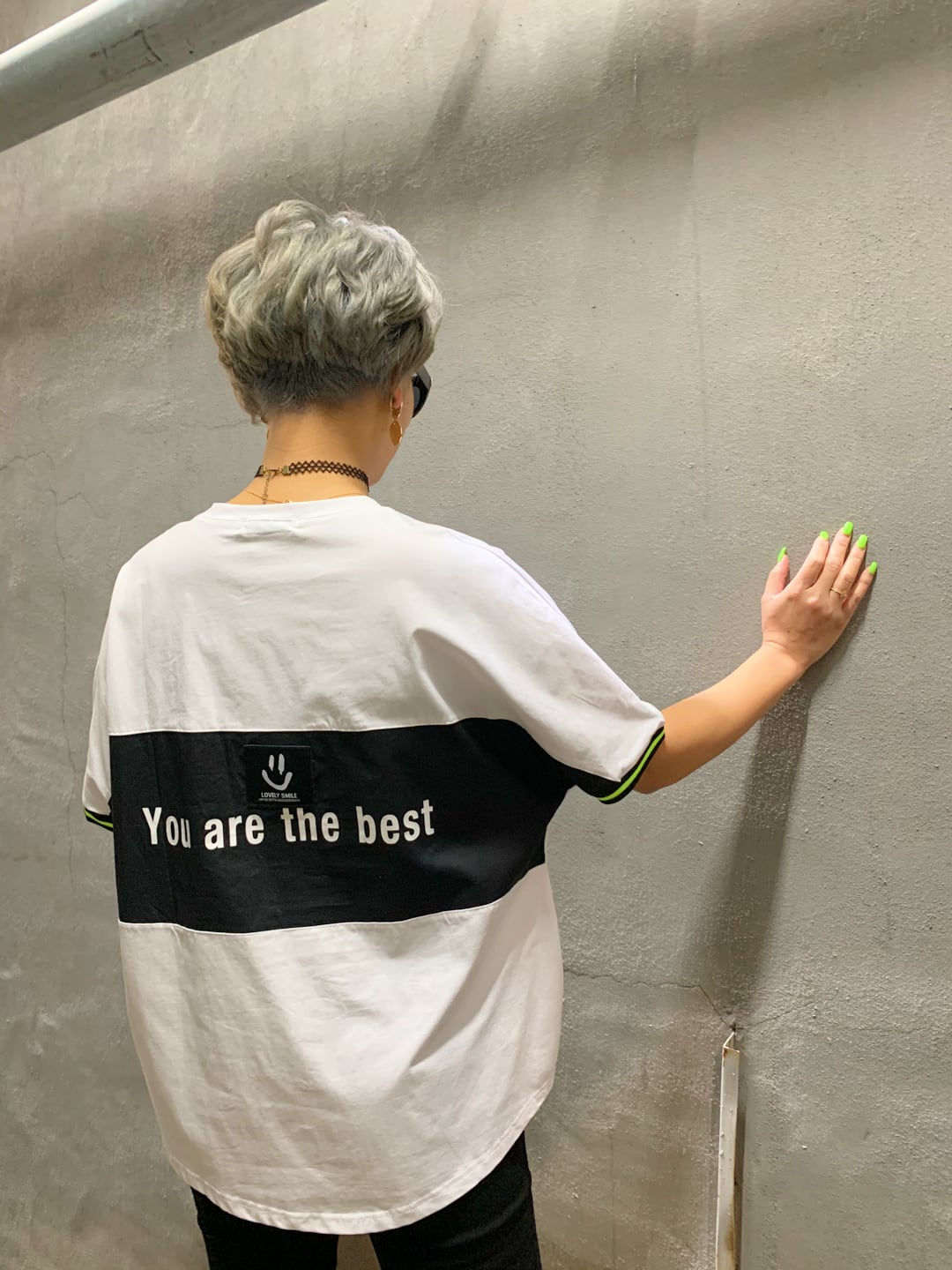 print t-shirt プリント Tシャツ オーバー かすれプリント バイカラー ネオンカラー スポーティー MIX ボーダー