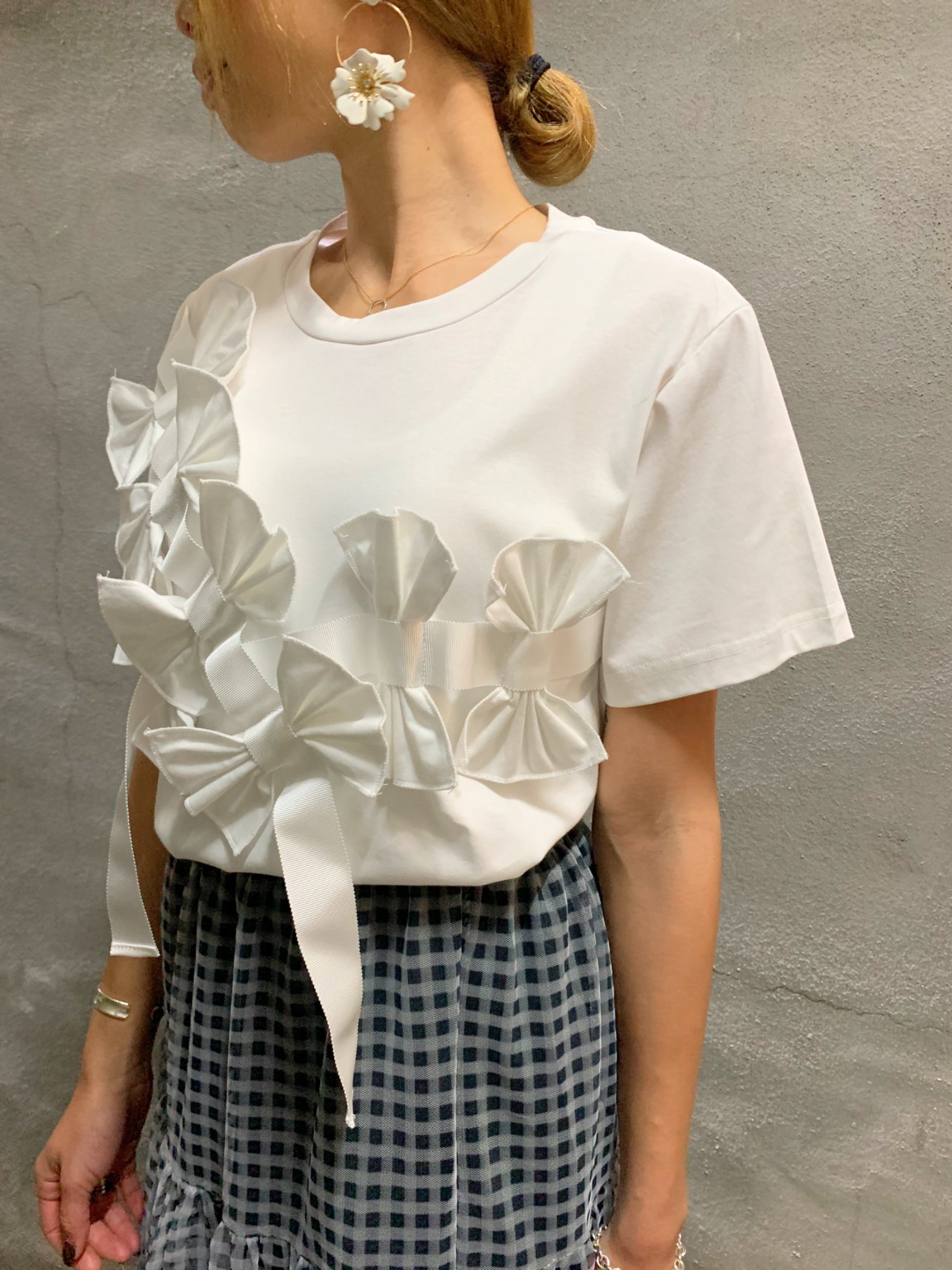 ribbon T-shirt Tシャツ トップス リボン フラワー デザイン