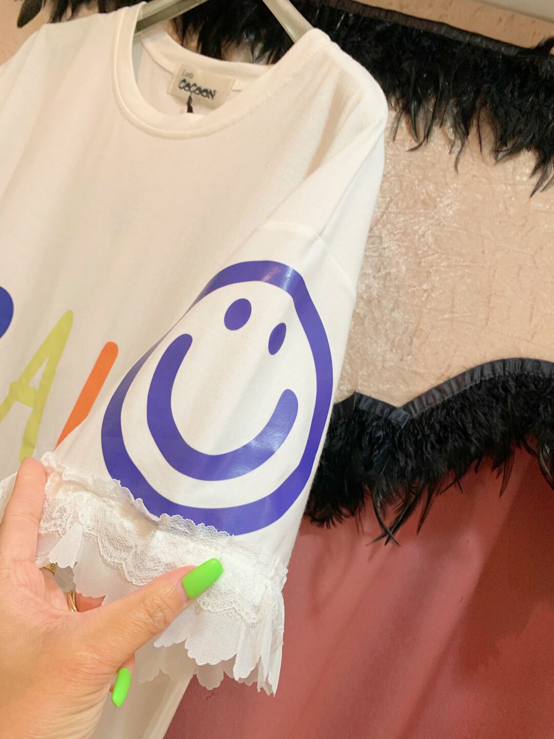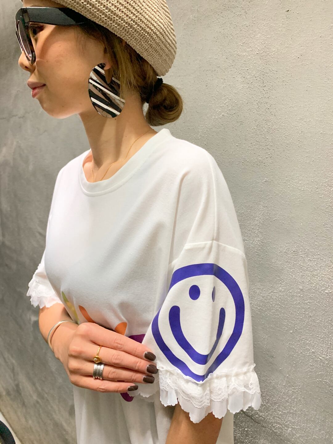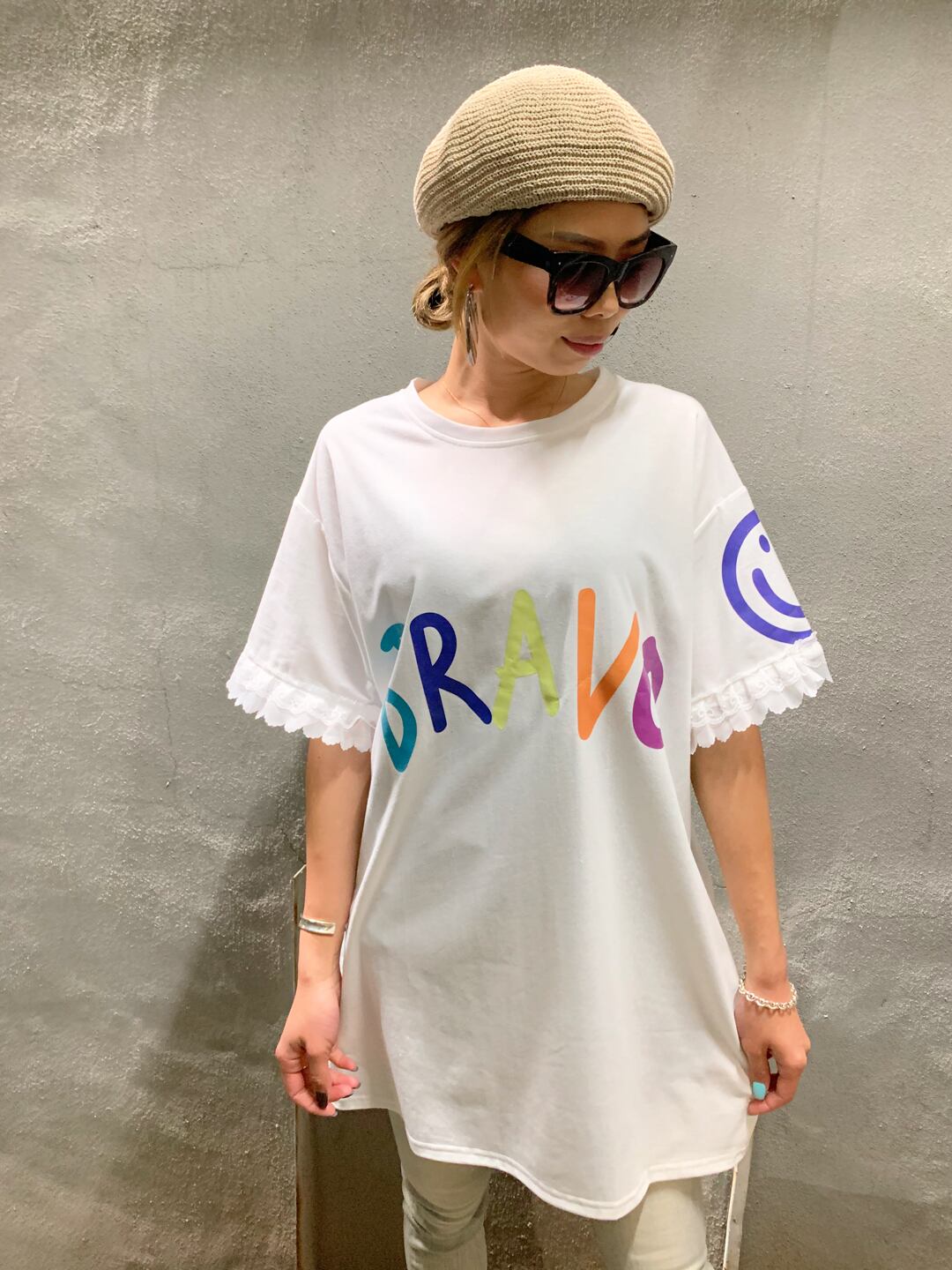 BRAVO smiley T-tunic Tシャツ トップス チュニック カラフル スマイリー ニコちゃん レース