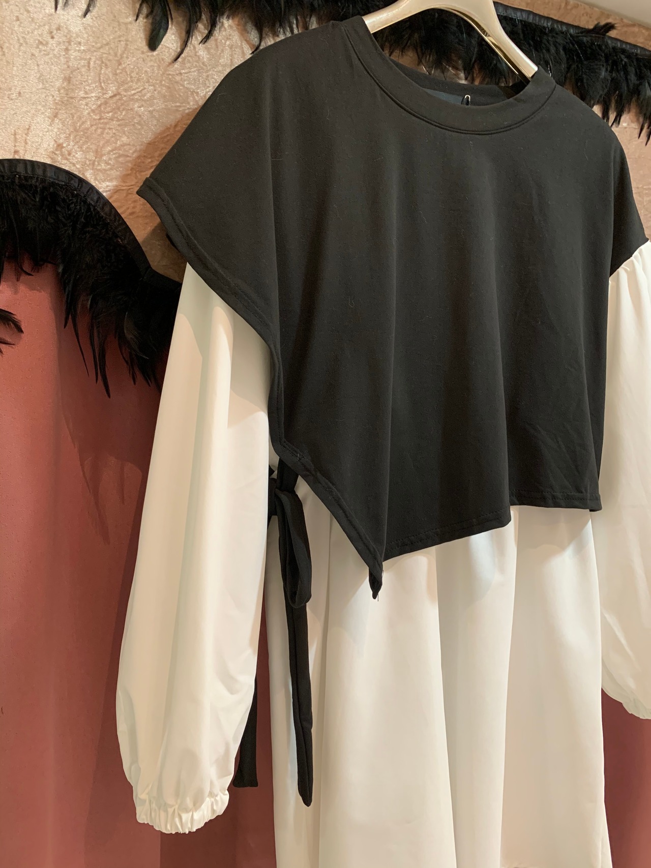 docking shirt tunic トップス チュニック ドッキング リボン 切替 デザイントップス
