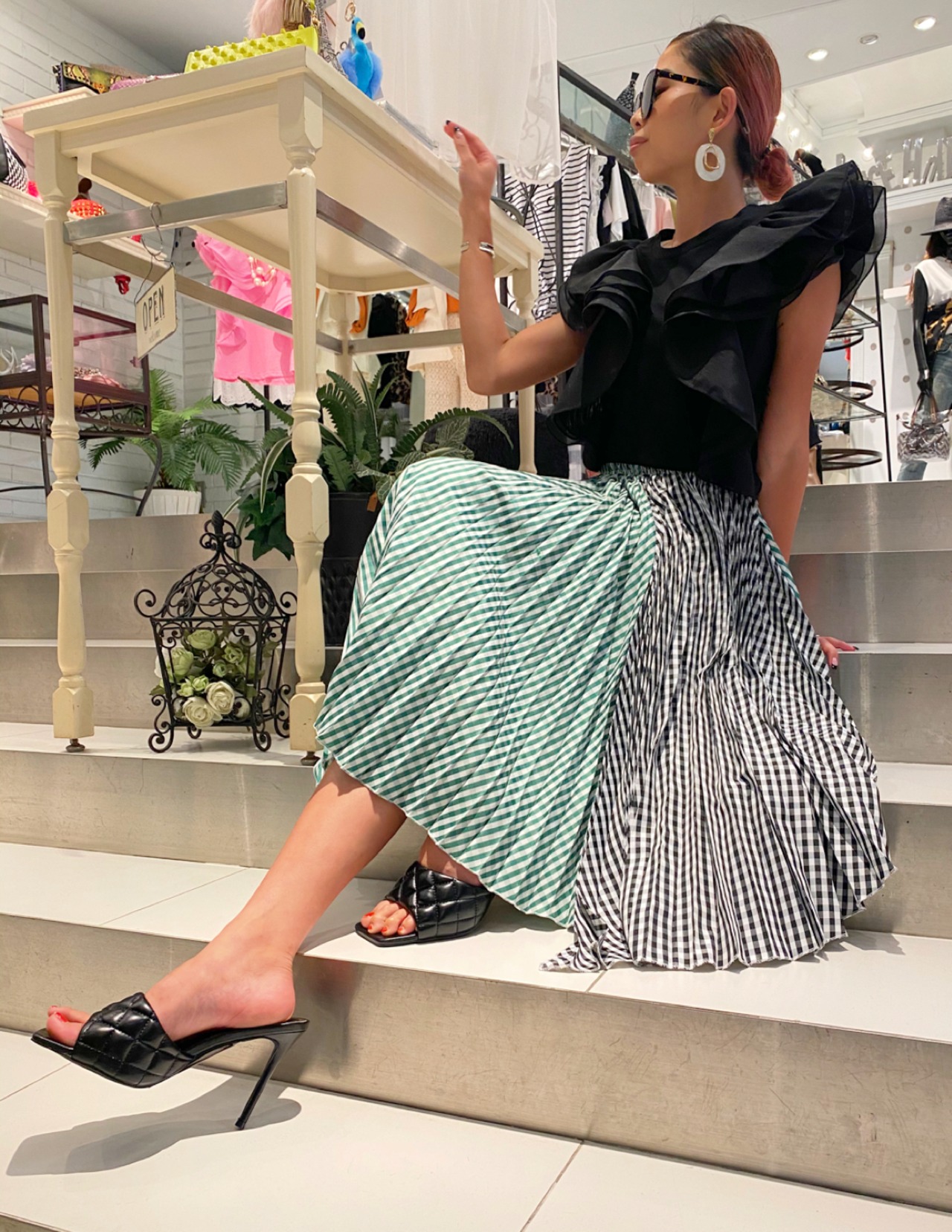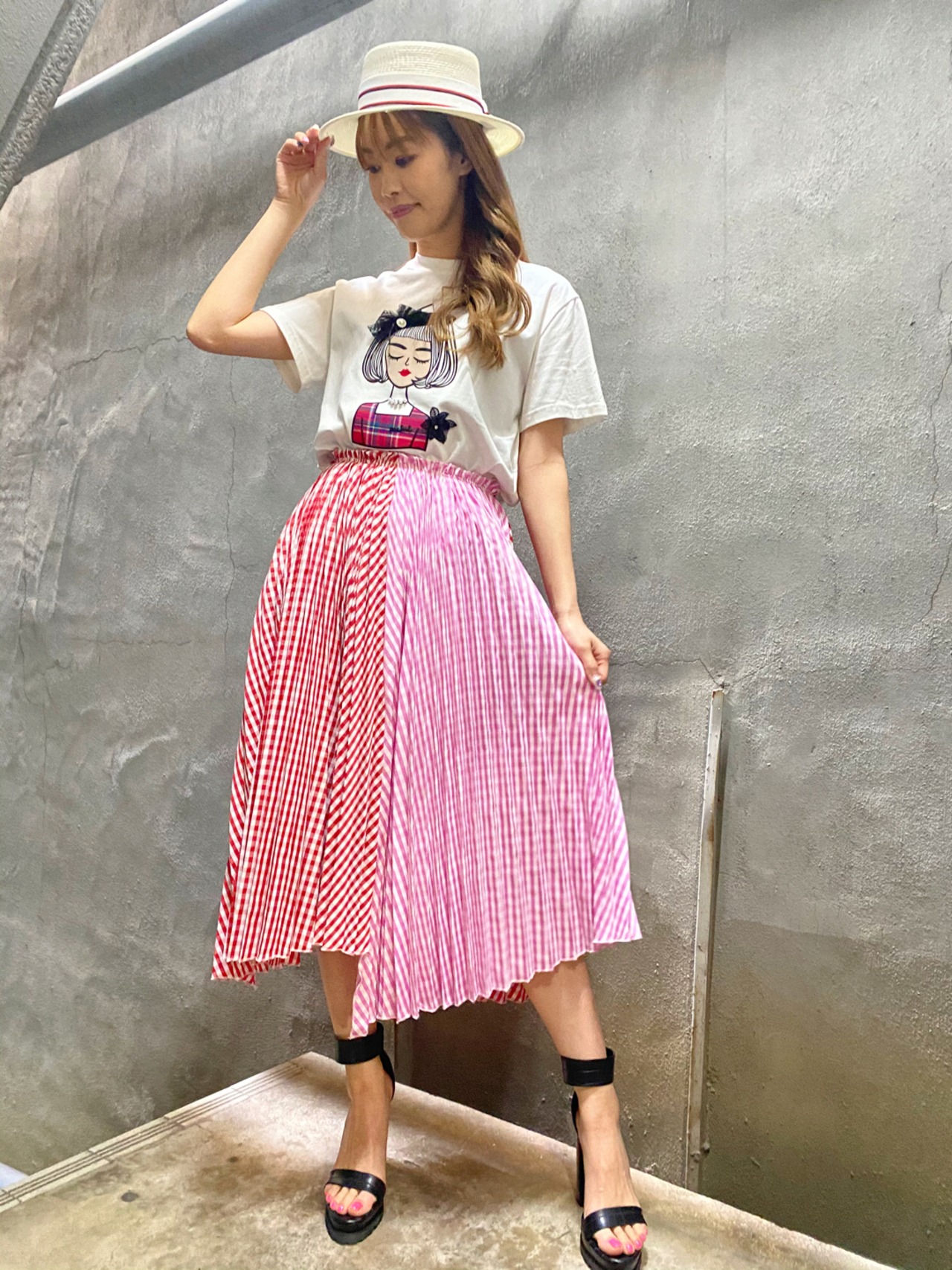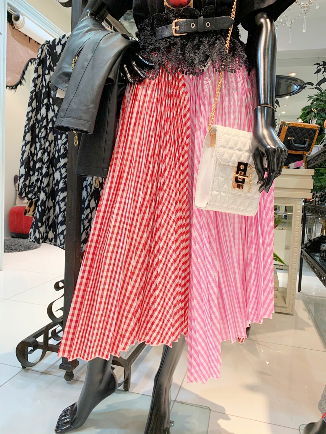 gingham check skirt ギンガムチェック 柄 プリント スカート フレア イレギュラー ヘム ロング