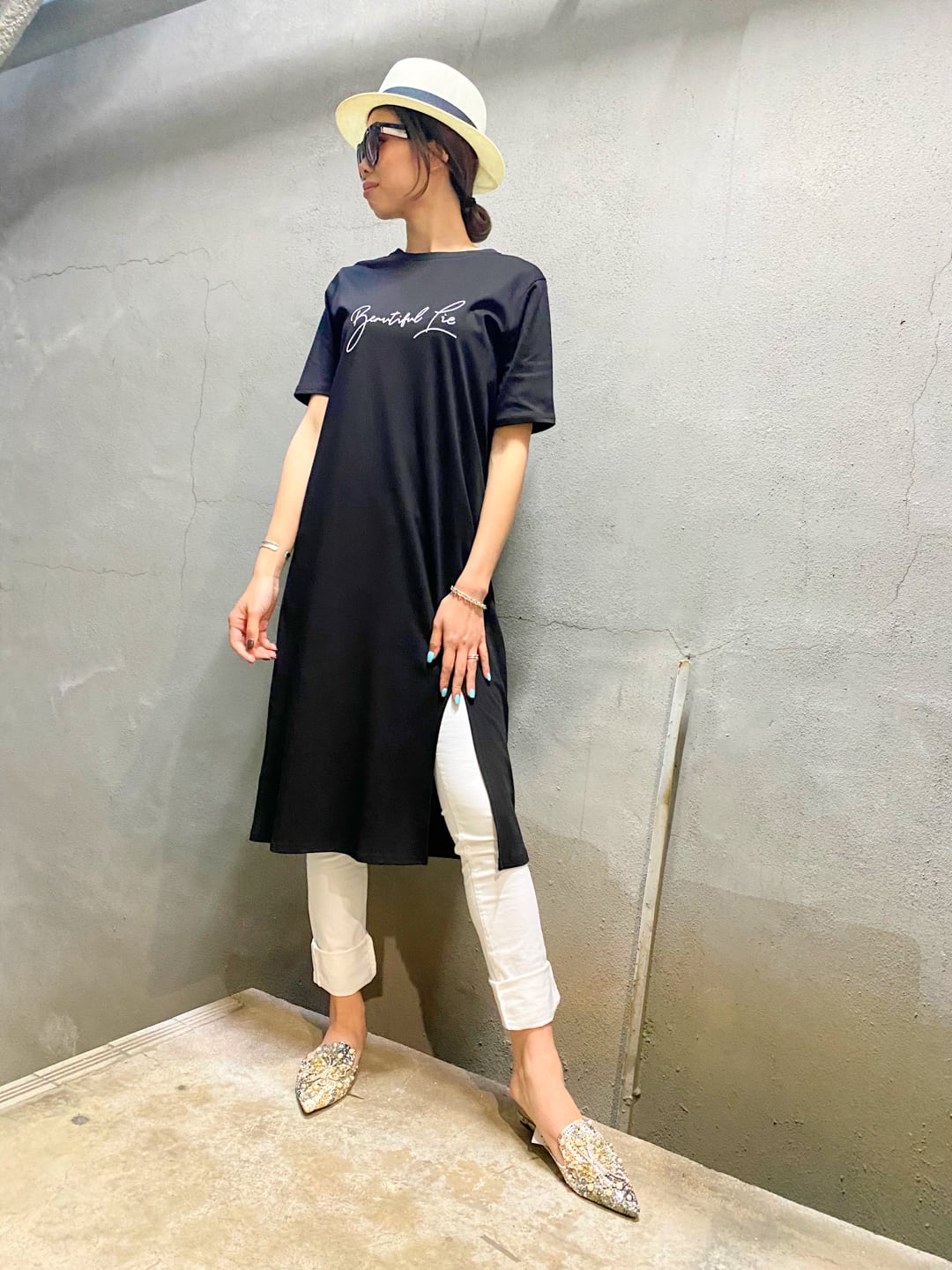 T-shirt long one piece Tシャツ ワンピース スリット デザイン メッセージ プリント ロング丈