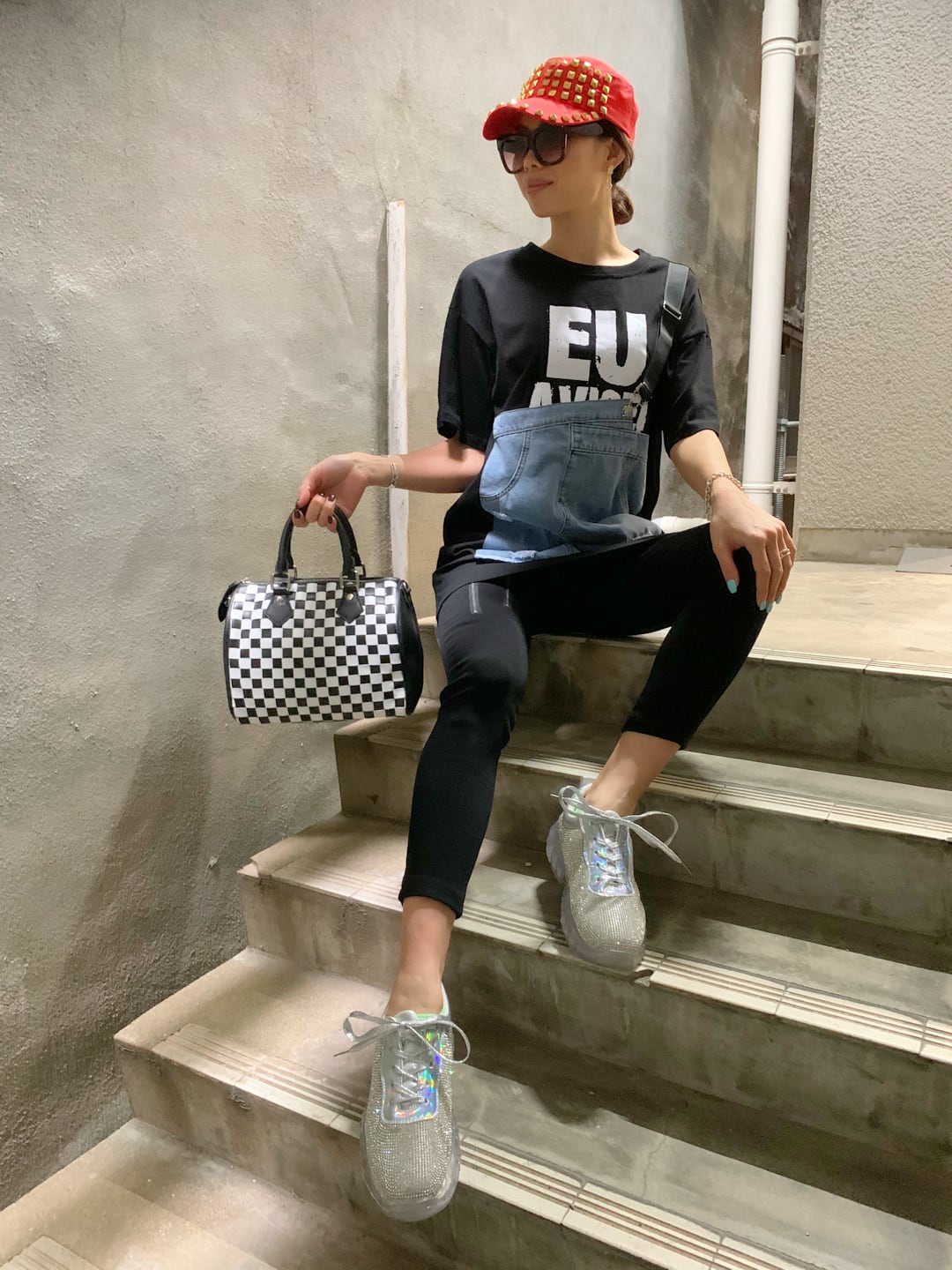 denim patch big T-tunic Tシャツ トップス チュニック デニム ベルト デザイン