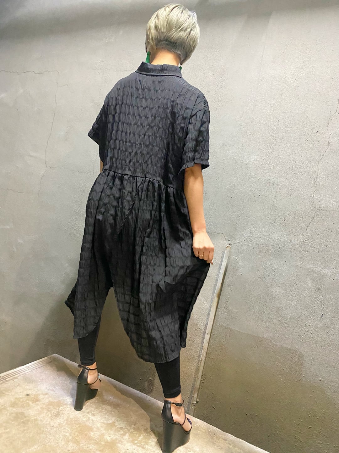 eyelet design shirt tunic アイレット ふくれボーダー デザイン シャツ チュニック ワンピース 変形 シルエット ロング COOL