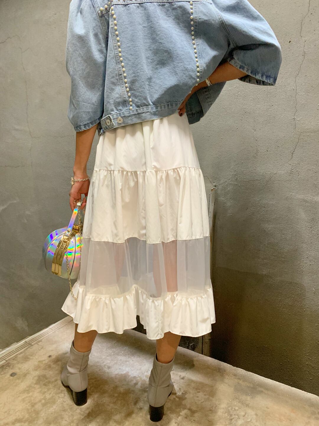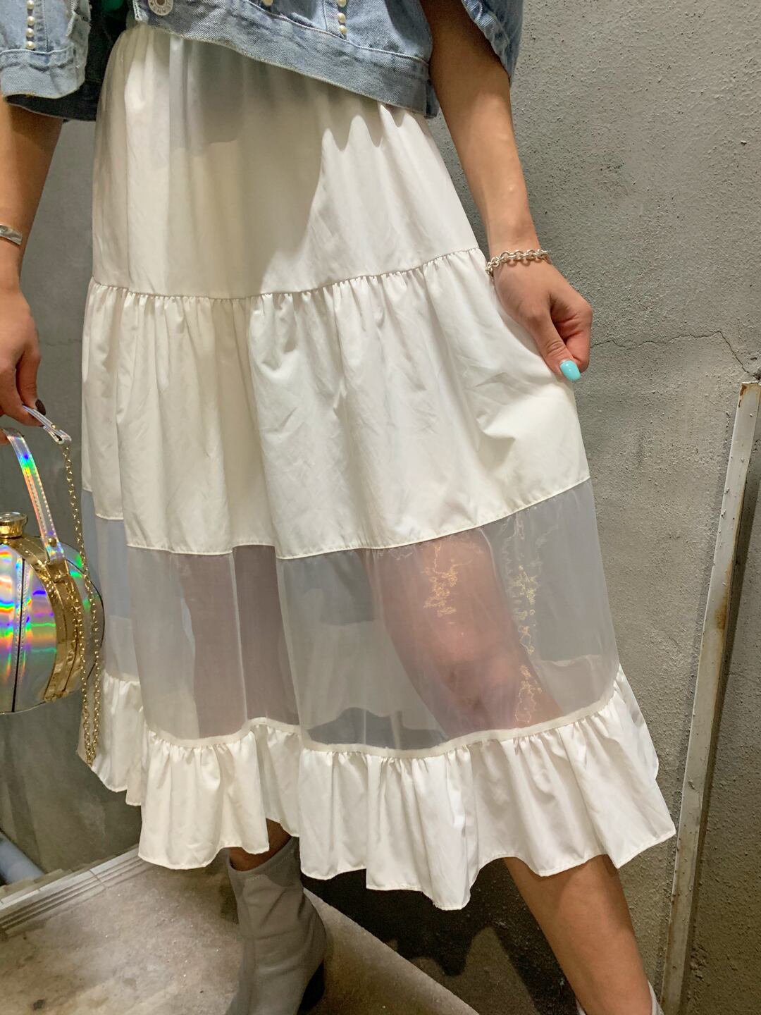 mix fabric gather skirt ミックスファブリック ギャザー スカート シースルーフリル
