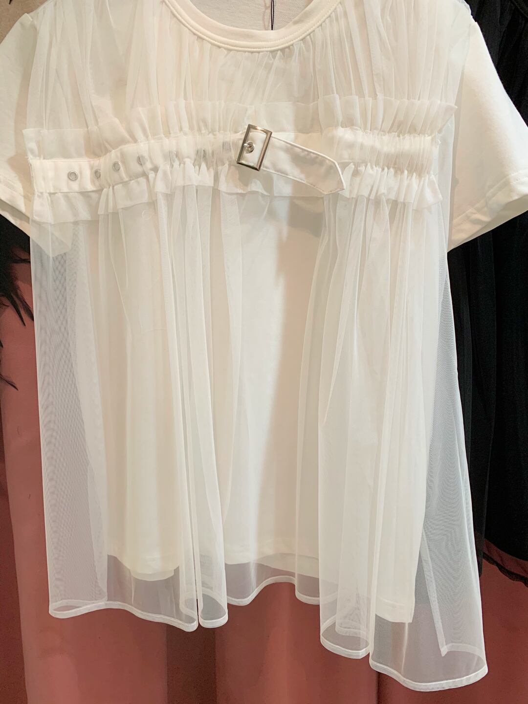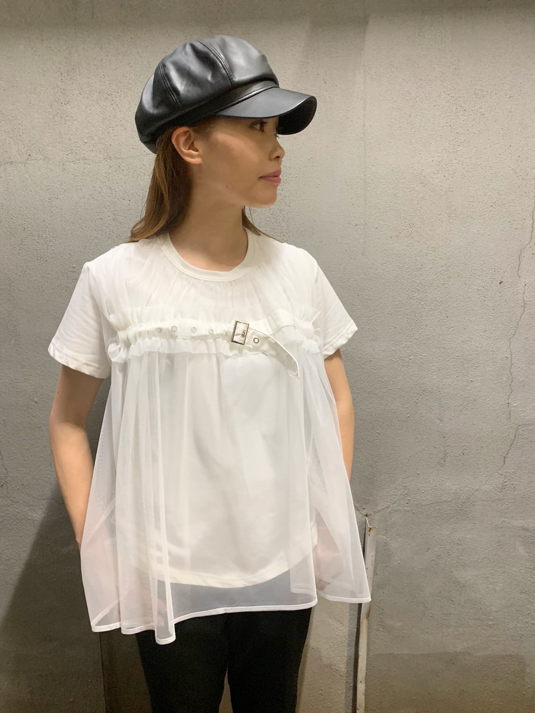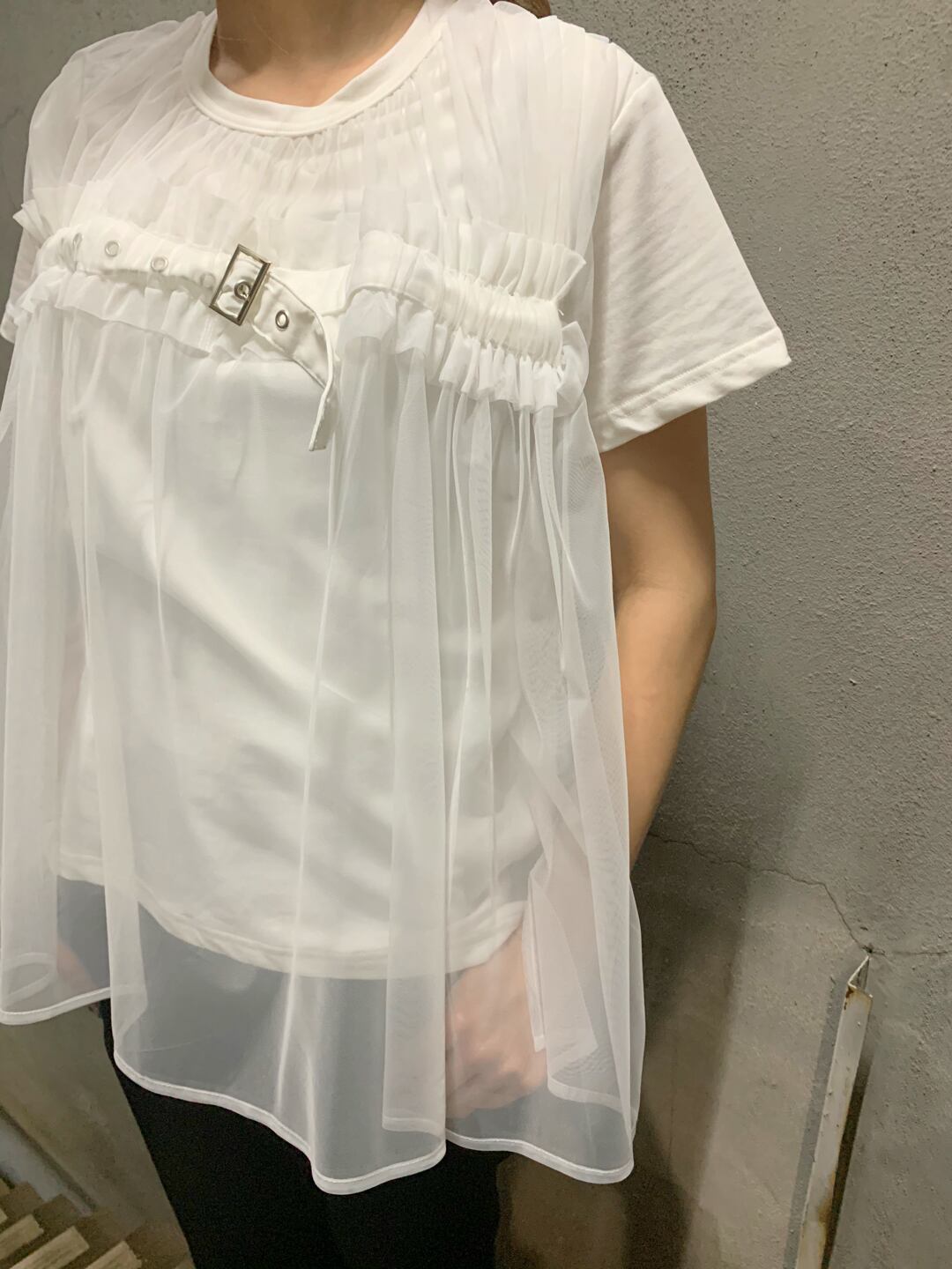 belted gather see-through lap tops トップス シースルー ベルテッド 透け感