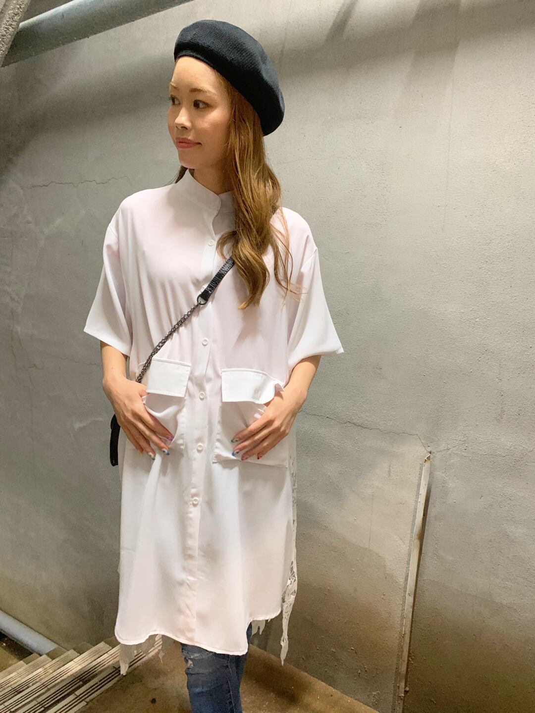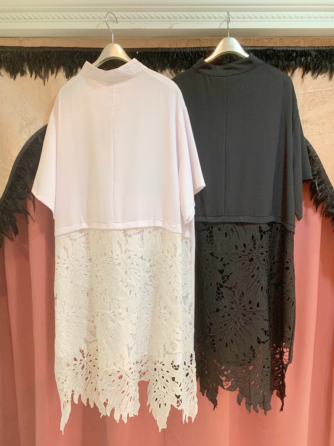 back lace shirt-tunic ロングシャツ シャツワンピ レース 切替 デザイン