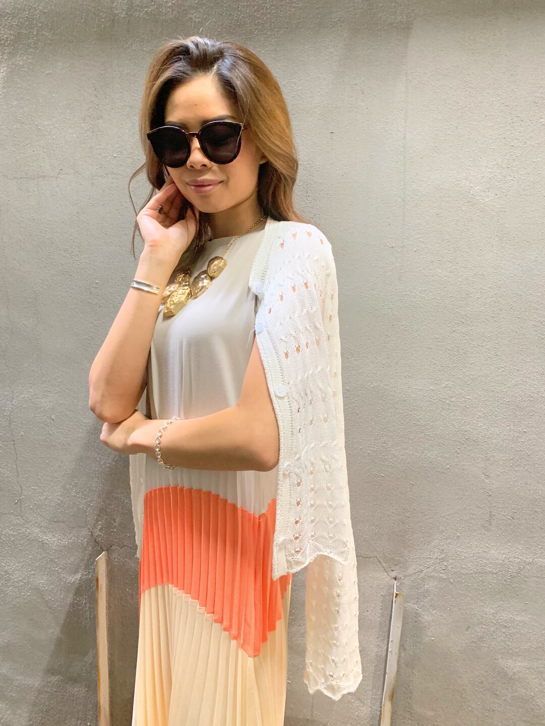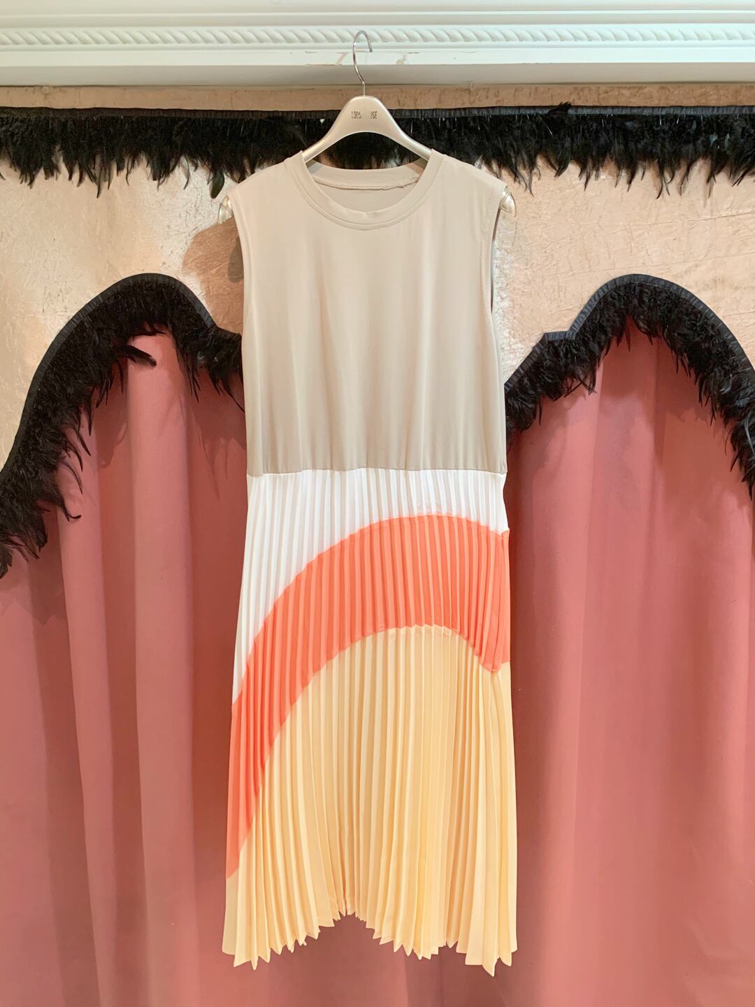 color pleats one-piece ワンピース ワンピ 配色 プリーツ ノースリーブ きれいめ