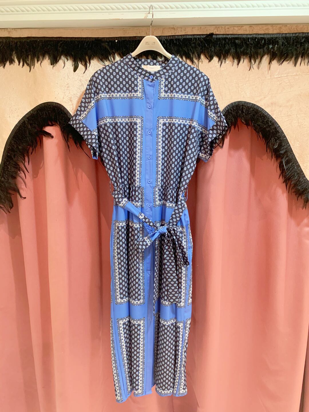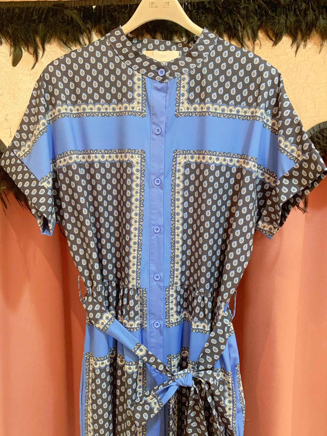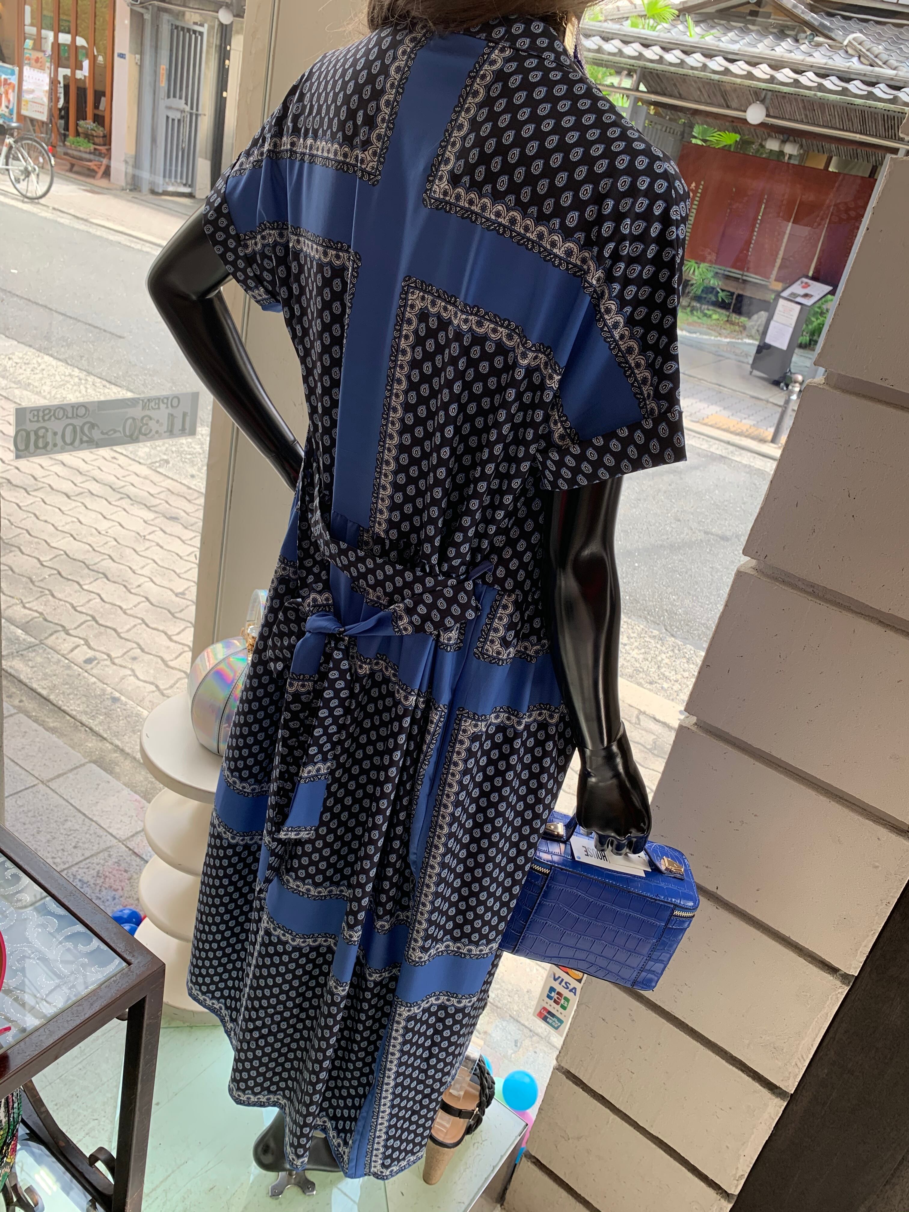 mini paisley print one-piece ワンピース ワンピ 半袖 ペイズリー ブルー 柄ワンピ ウエストリボン