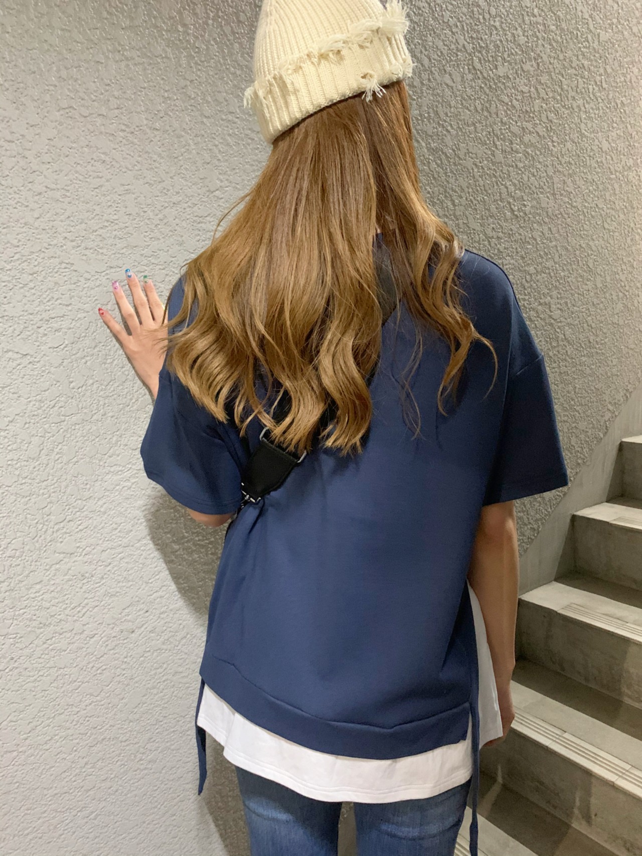 layered bi-color tops トップス 重ね着風 レイヤード 配色 バイカラー オーバーサイズ ビッグシルエット
