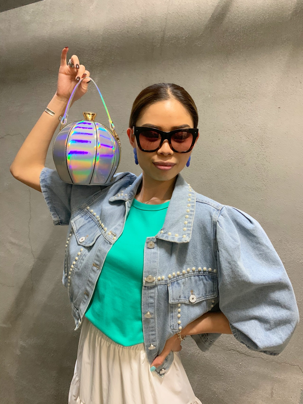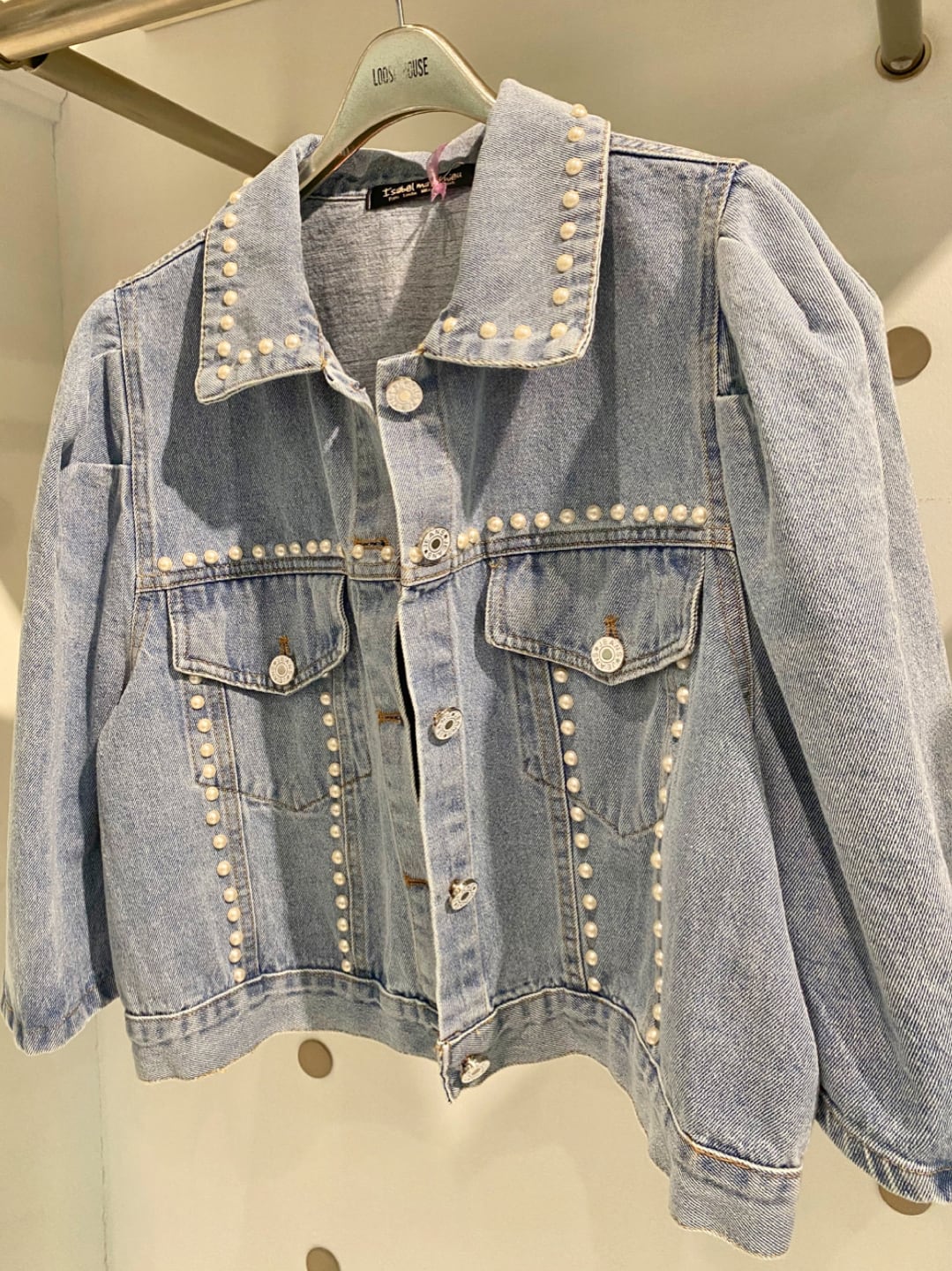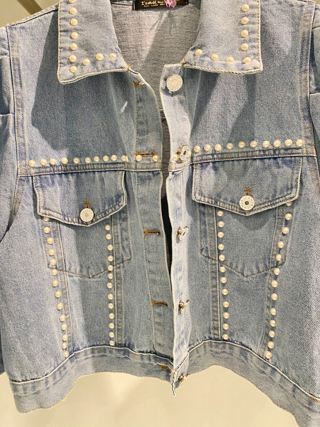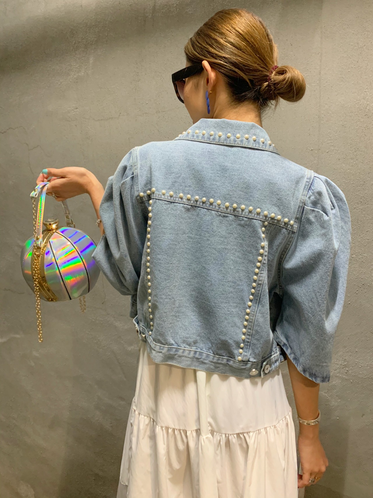 denim perl trim jaket デニムジャケット パールトリム ショートデニム デザインジャケット