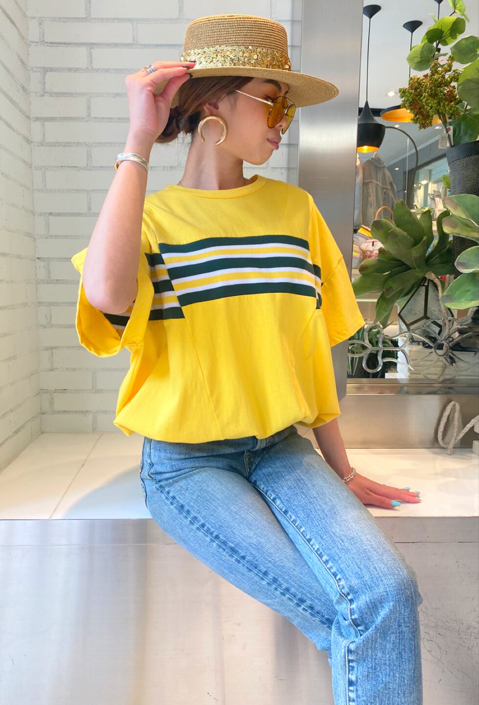 mulch border point tops トップス ビッグシルエット オーバーサイズ ライン入り ドロスト