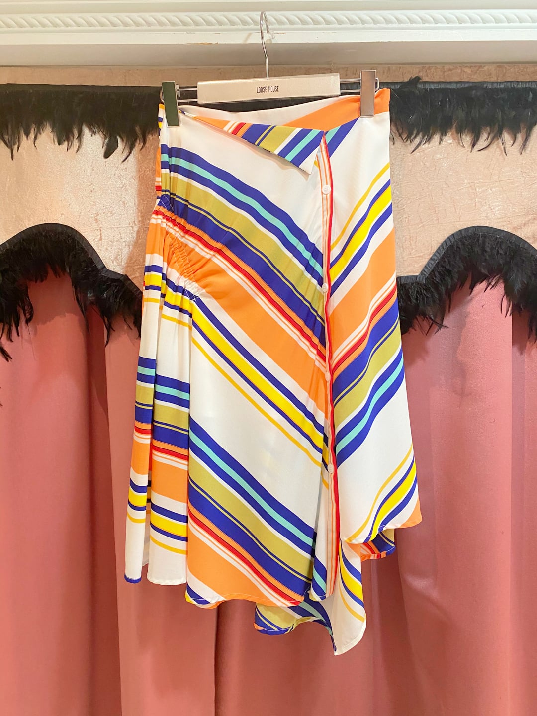 mulch border shirt design flare skirt マルチボーダー シャツ デザイン風 フレア スカート カラフル 夏