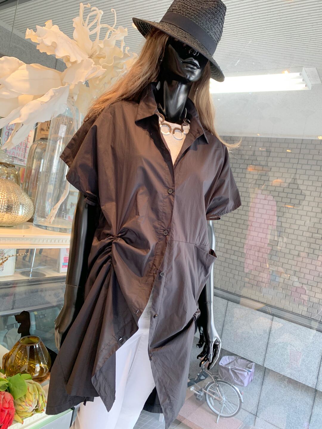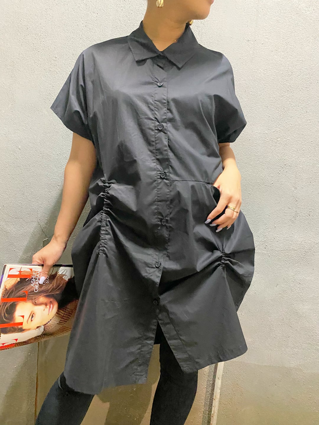 drawstring shirt one-piece ドロスト シャツ ワンピース ワンピ チュニック イレギュラー シルエット 変形 ショートスリーブ