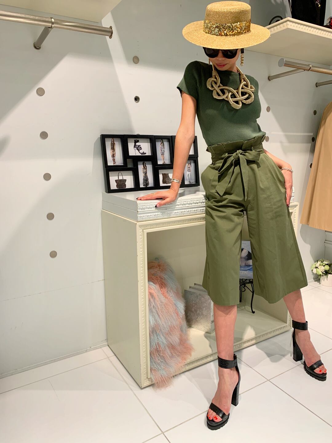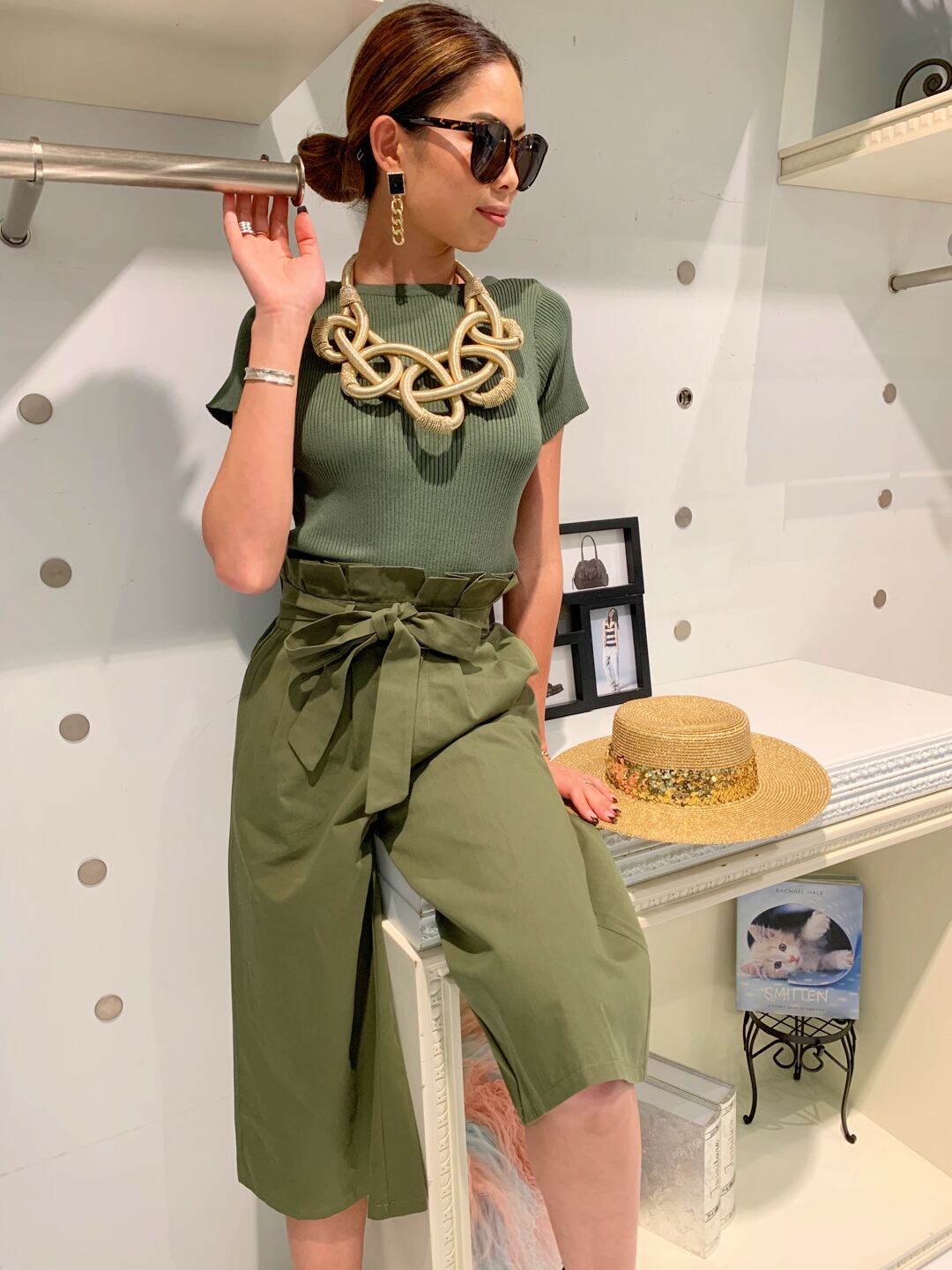ribbon waist flare pants×tops set セットアップ フレアーパンツ リブニットトップス
