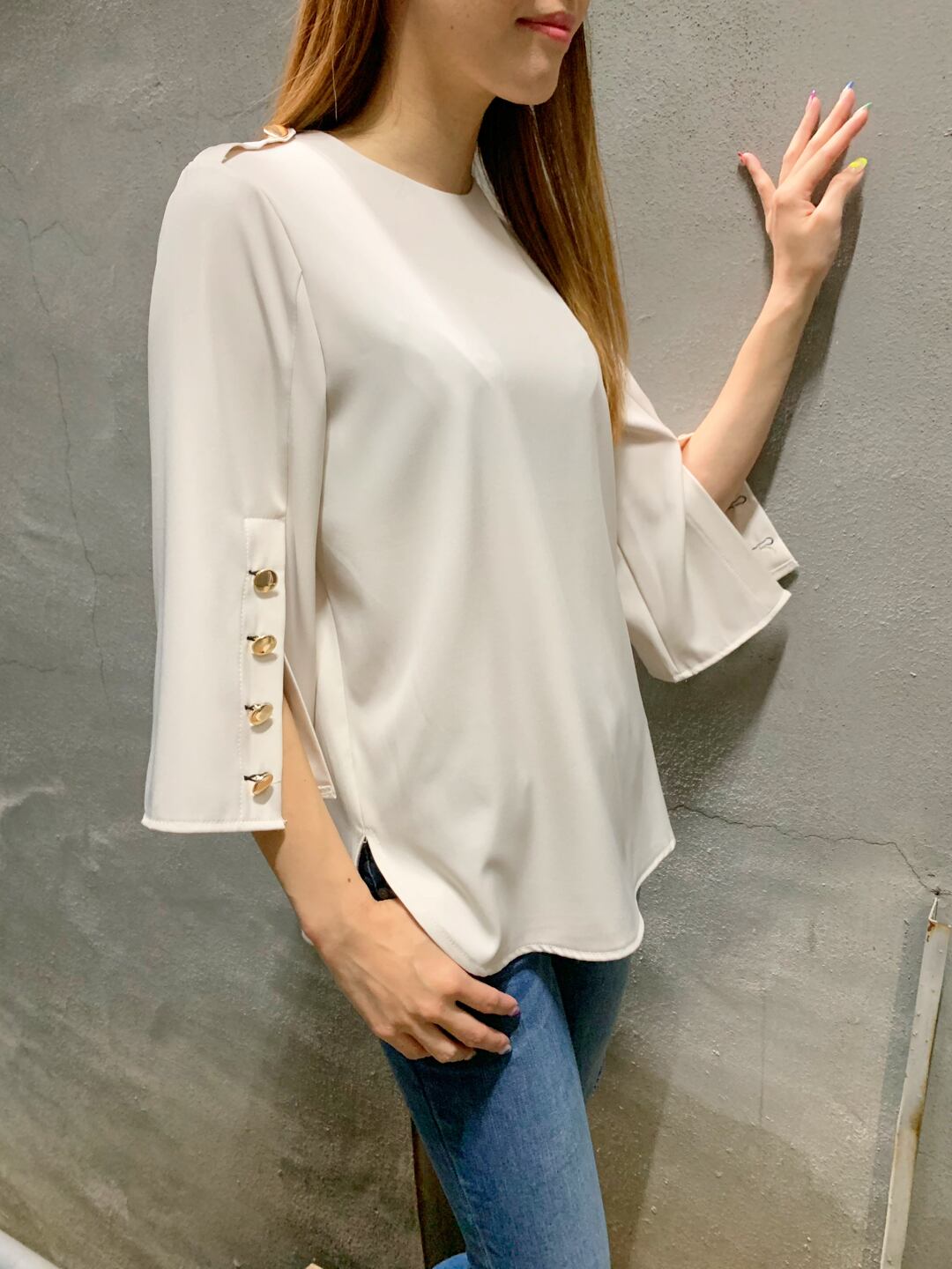 slid sleeve gold button tops スリット スリーブ 袖 ゴールド ボタン トップス キレイめ 大人