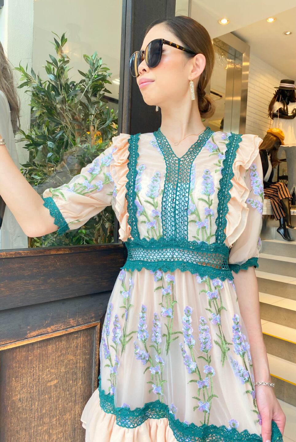 lavender embroidery one-piece ラベンダー 刺繍 チュールワンピース レース 切替 フリル