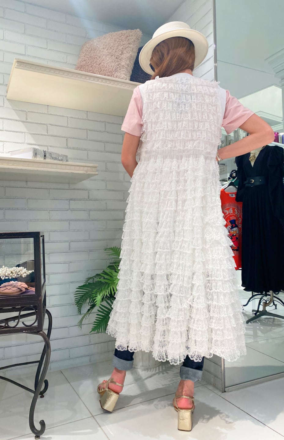 tiered frill race long one-piece ティアード フリル ロング丈 ワンピース ベスト リボン ベルト レース フレア