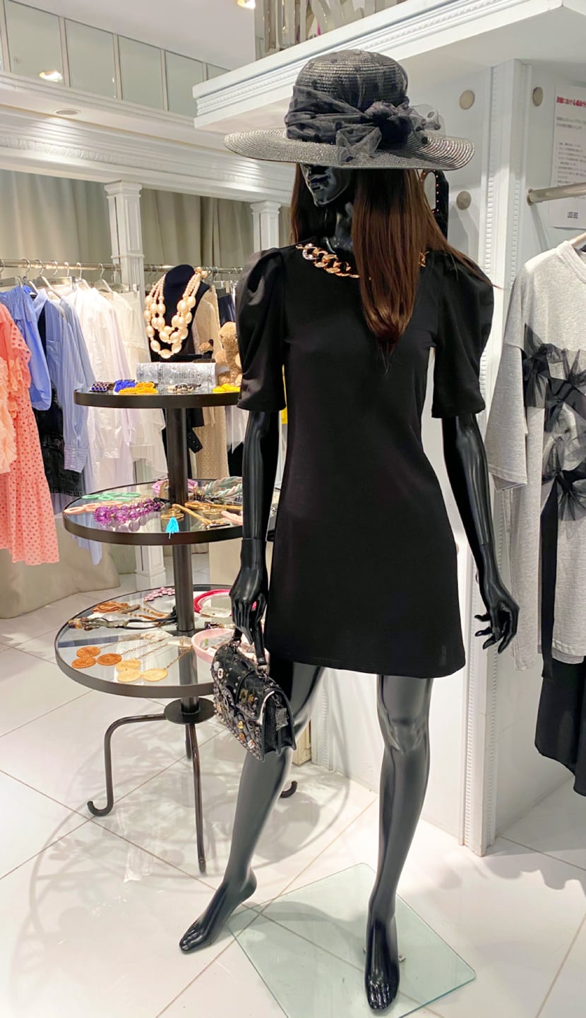 tuck sleeve chain mini tight one-piece タックスリーブ ミニワンピース タイト チェーンデザイン