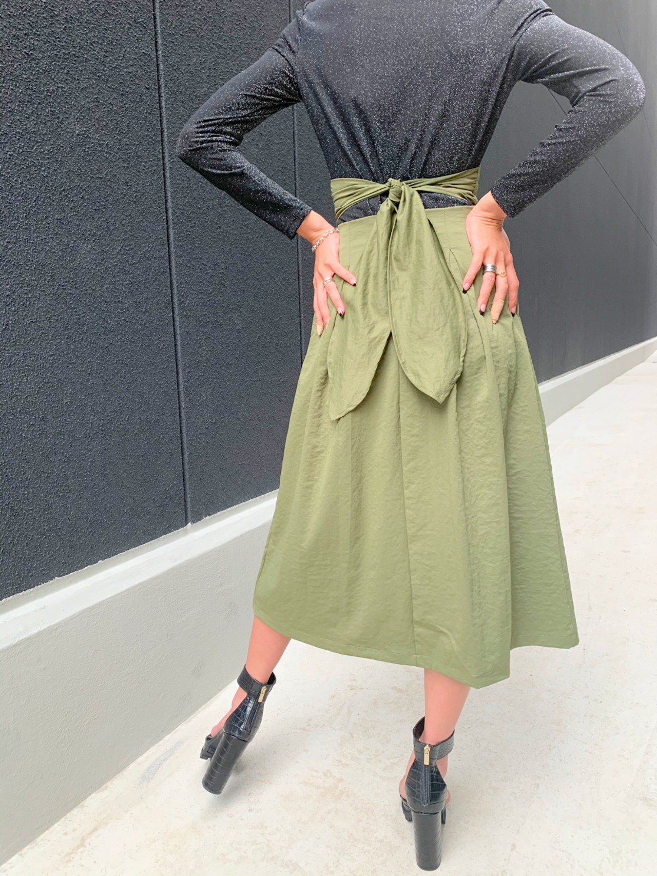 back ribbon high-waist flare skirt スカート フレアースカート リボン ハイウエスト