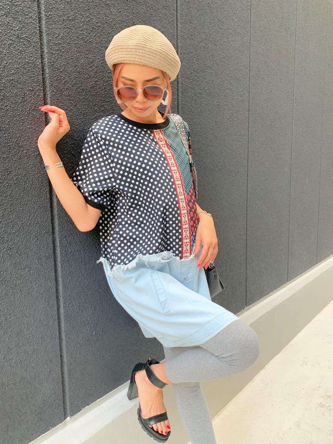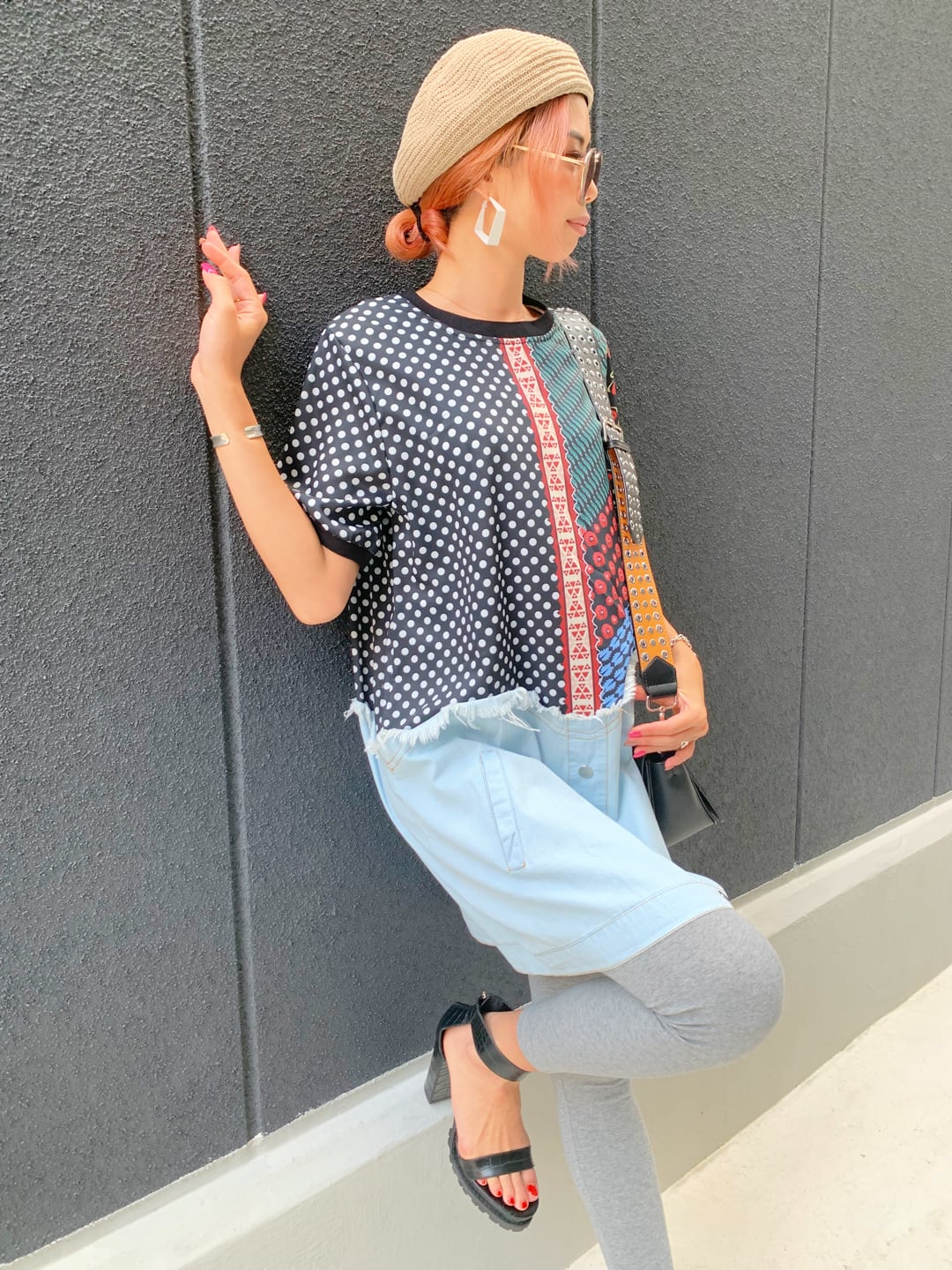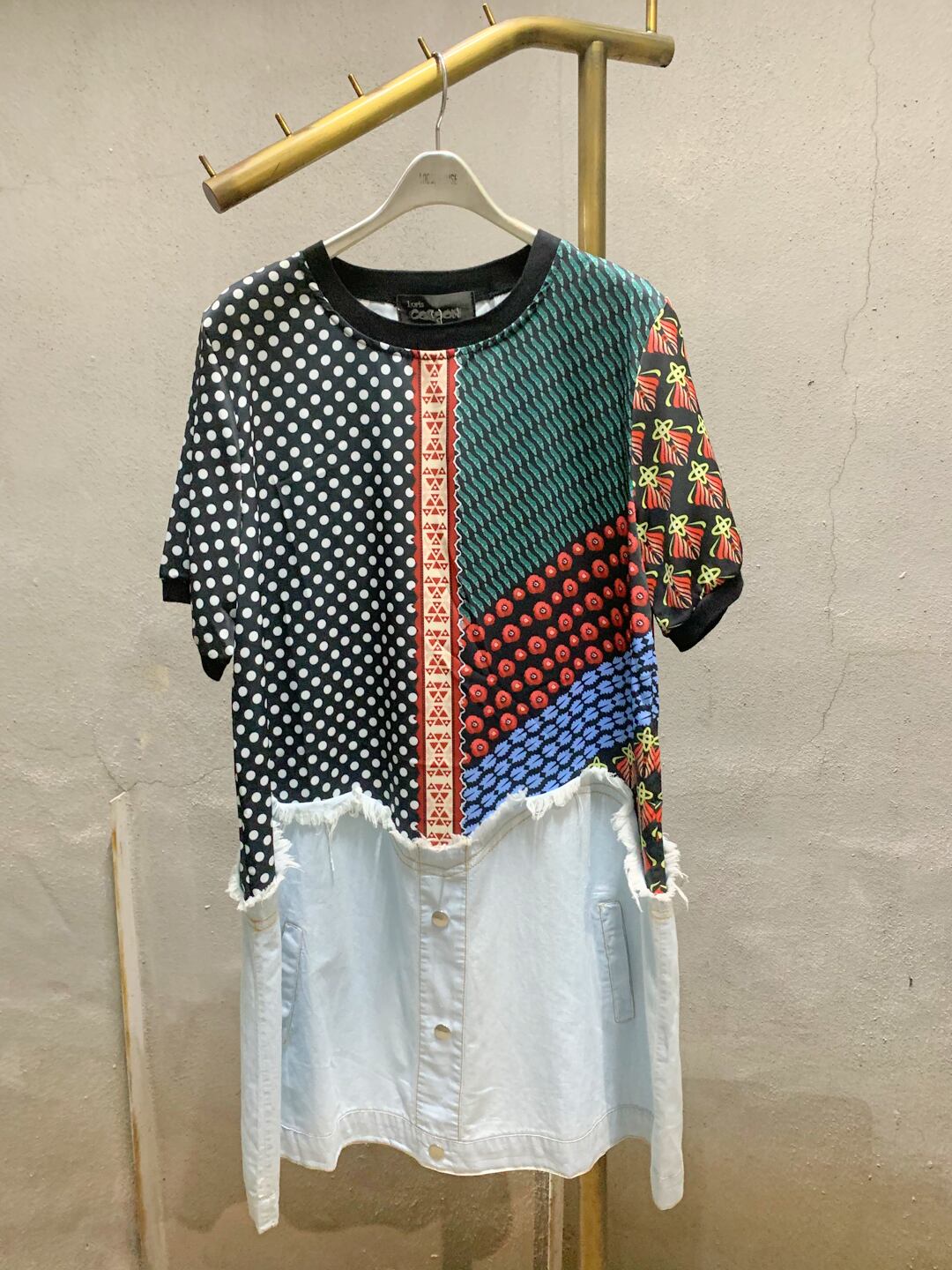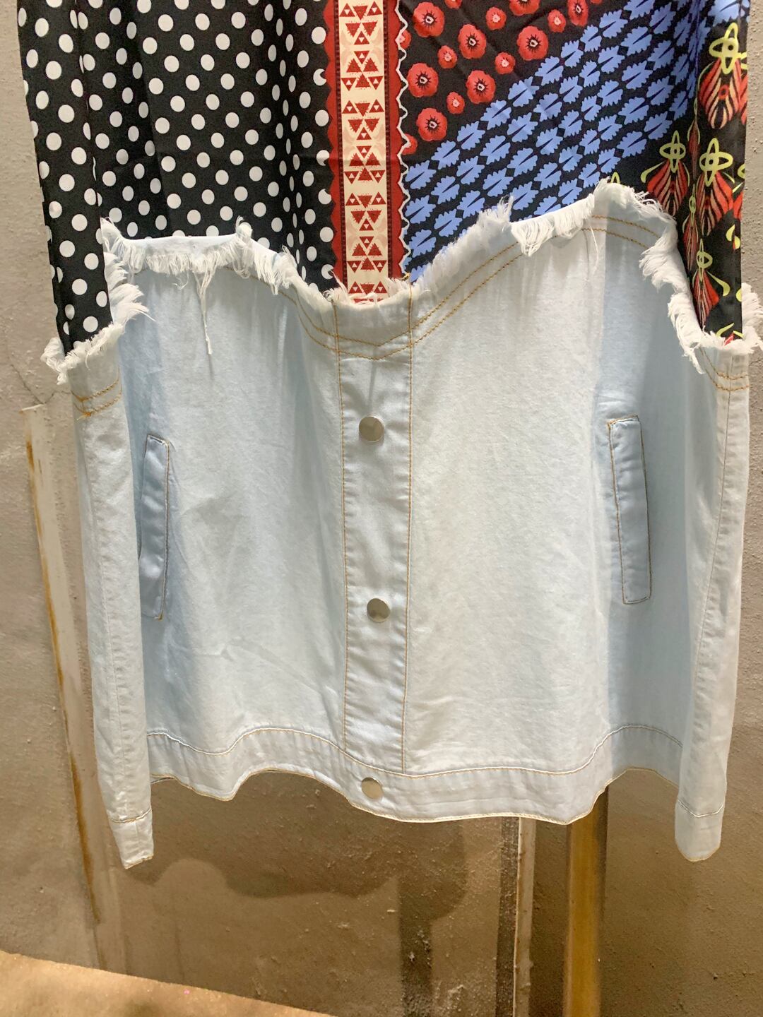 mix print denim change one-piece ワンピース ワンピ デニム プリント 柄ワンピ