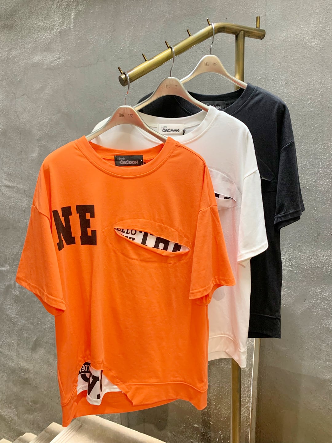 cut design loosefit tops トップス Tシャツ カットデザイン 配色 ダメージ