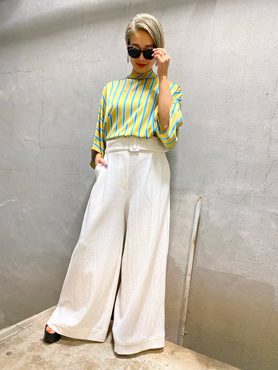 stripe box sleeve tops トップス ストライプ ボックススリーブ ハイネック デザイントップス