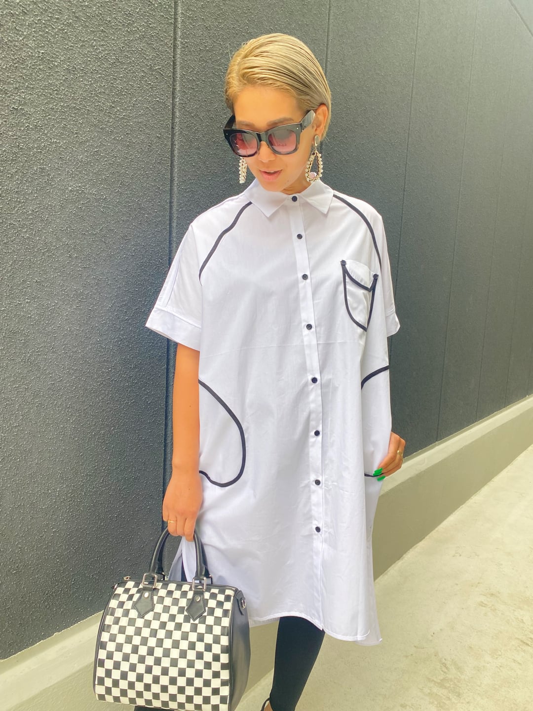 bi-color piping raglan shirt one-piece シャツワンピース シャツワンピ バイカラー 配色 デザインシャツ