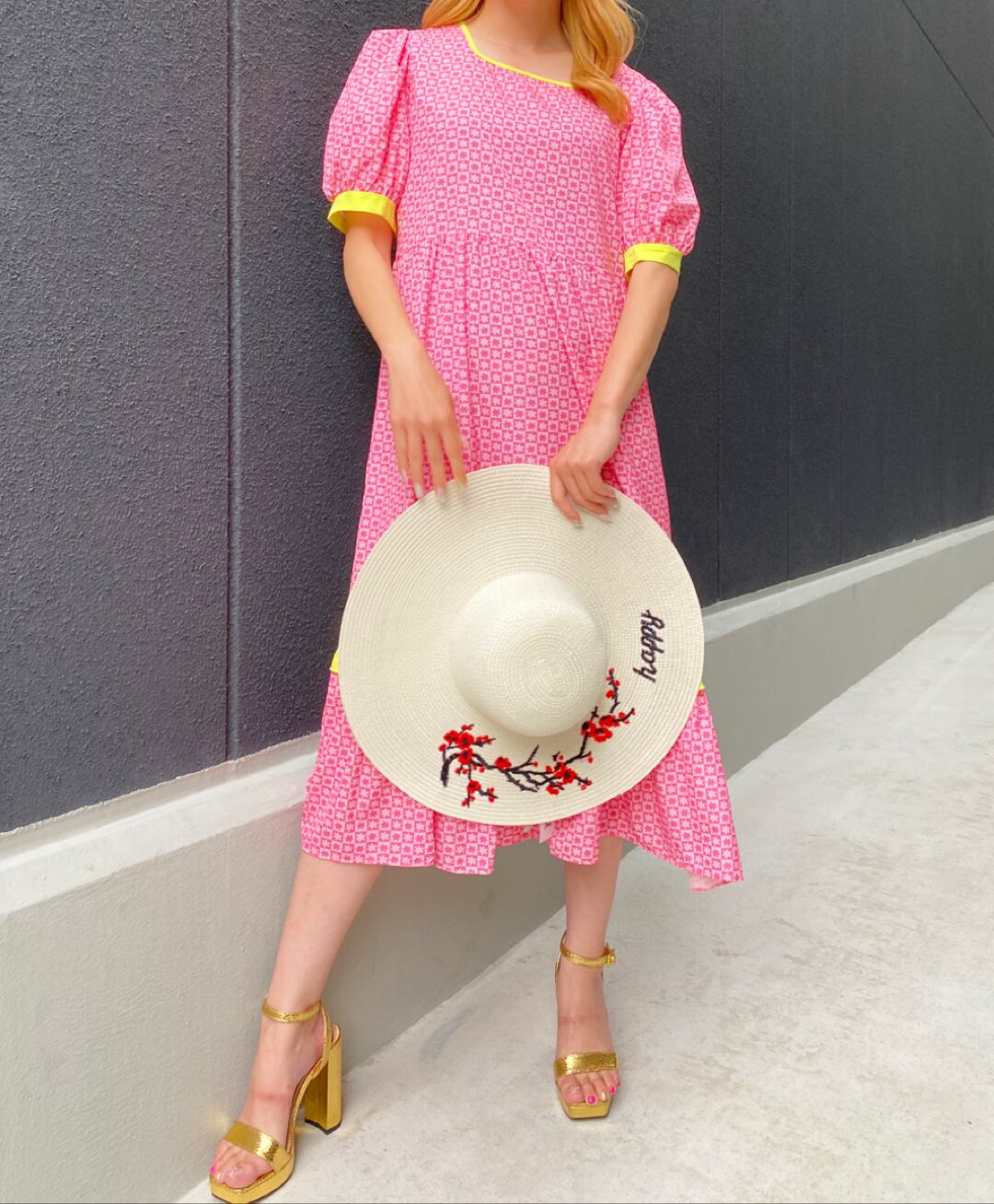 classical print one-piece クラシカル プリント ワンピース 配色 バイカラー ネオン ライン