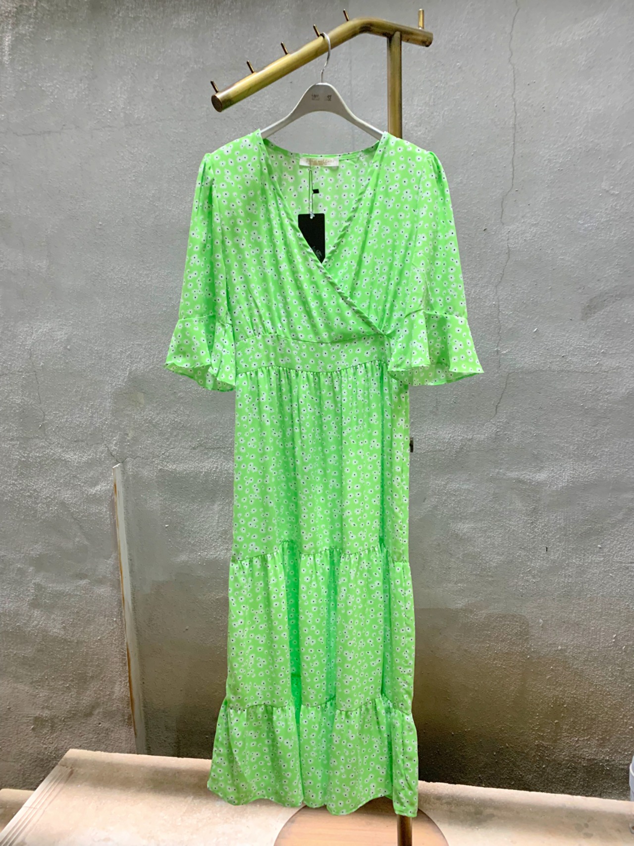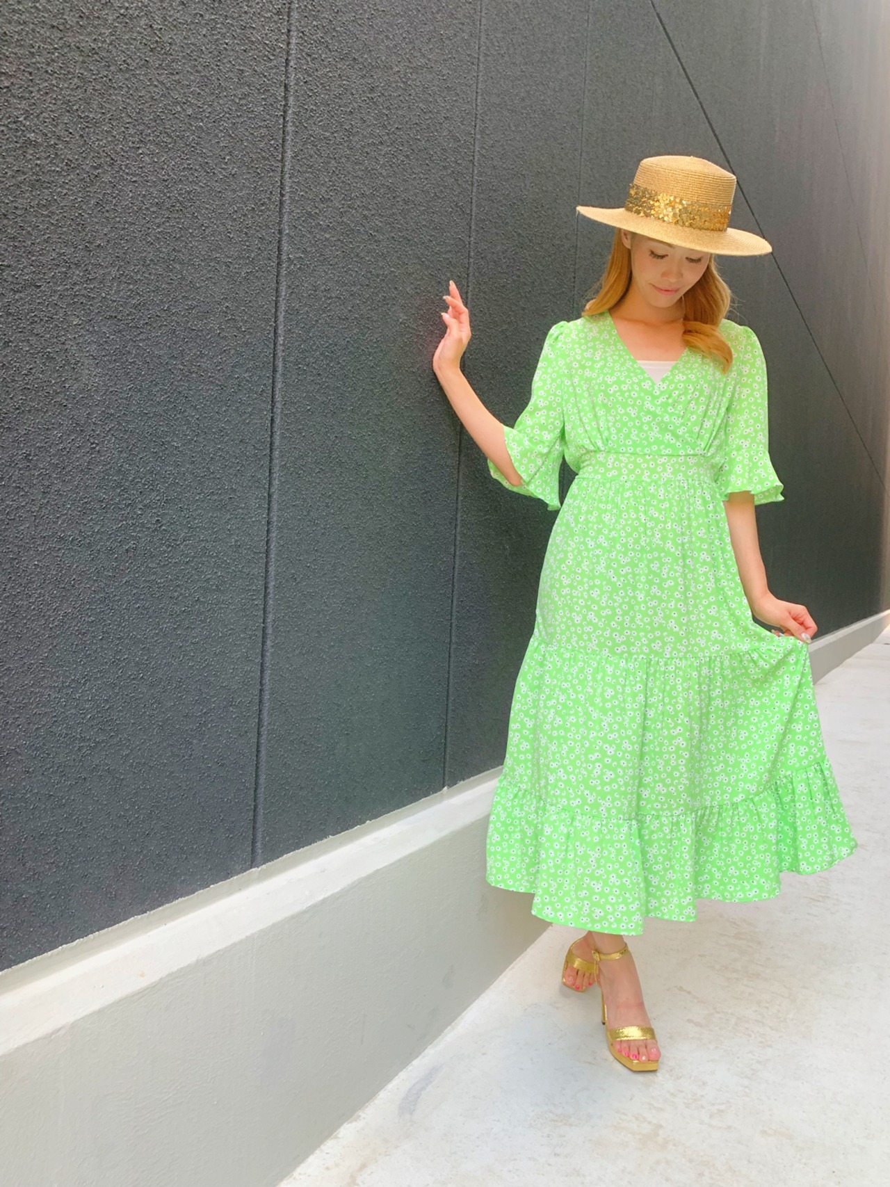 flower print one-piece ワンピース リバティ プリント Vネック カシュクール風 ワンピ ロング