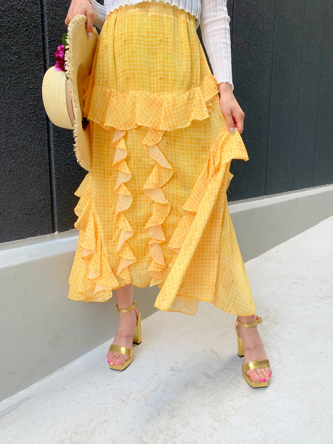 check pattern frill design skirt スカート 柄スカート チェック フリル