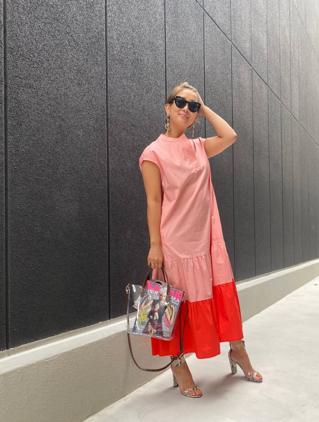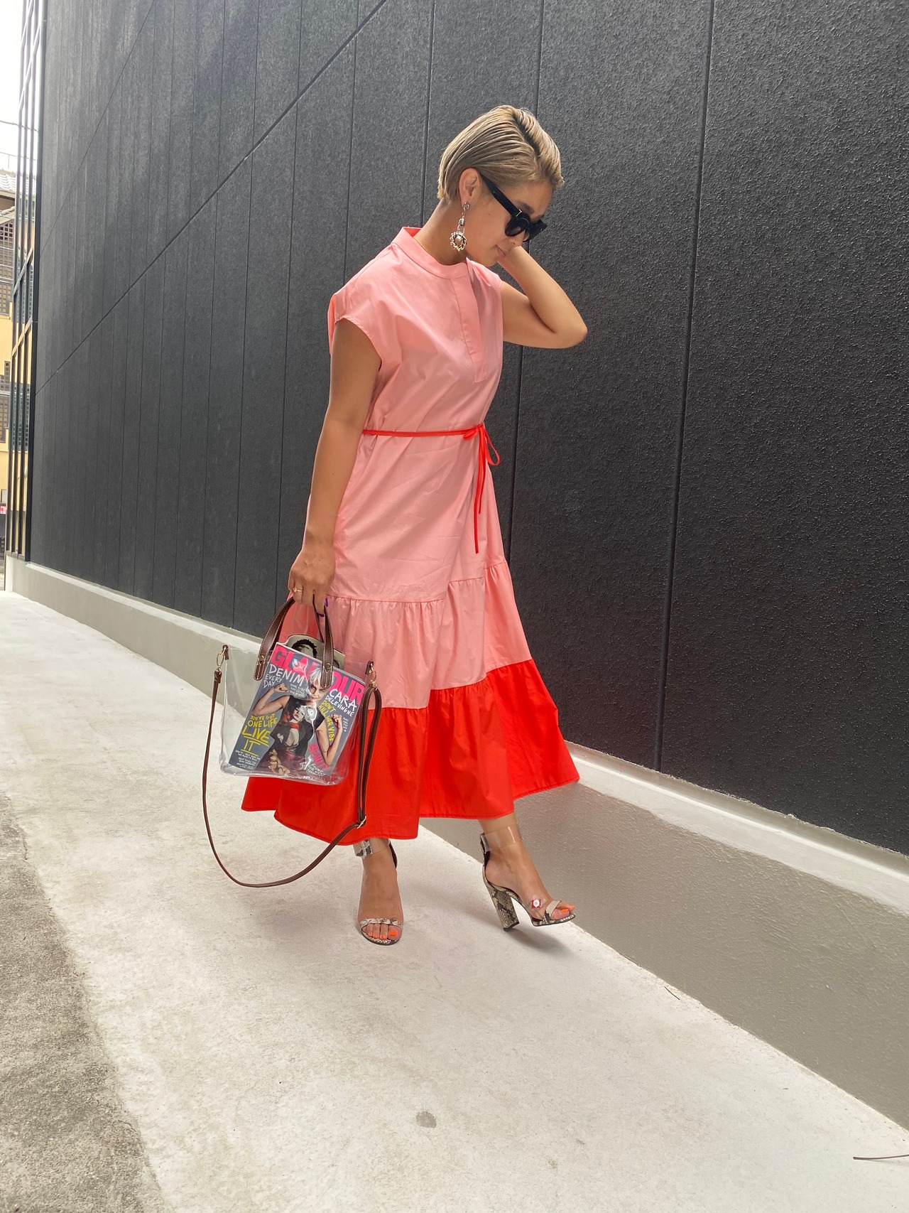 bi-color tiered.gather change one-piece ワンピース ワンピ 配色 バイカラー ゆったりめ