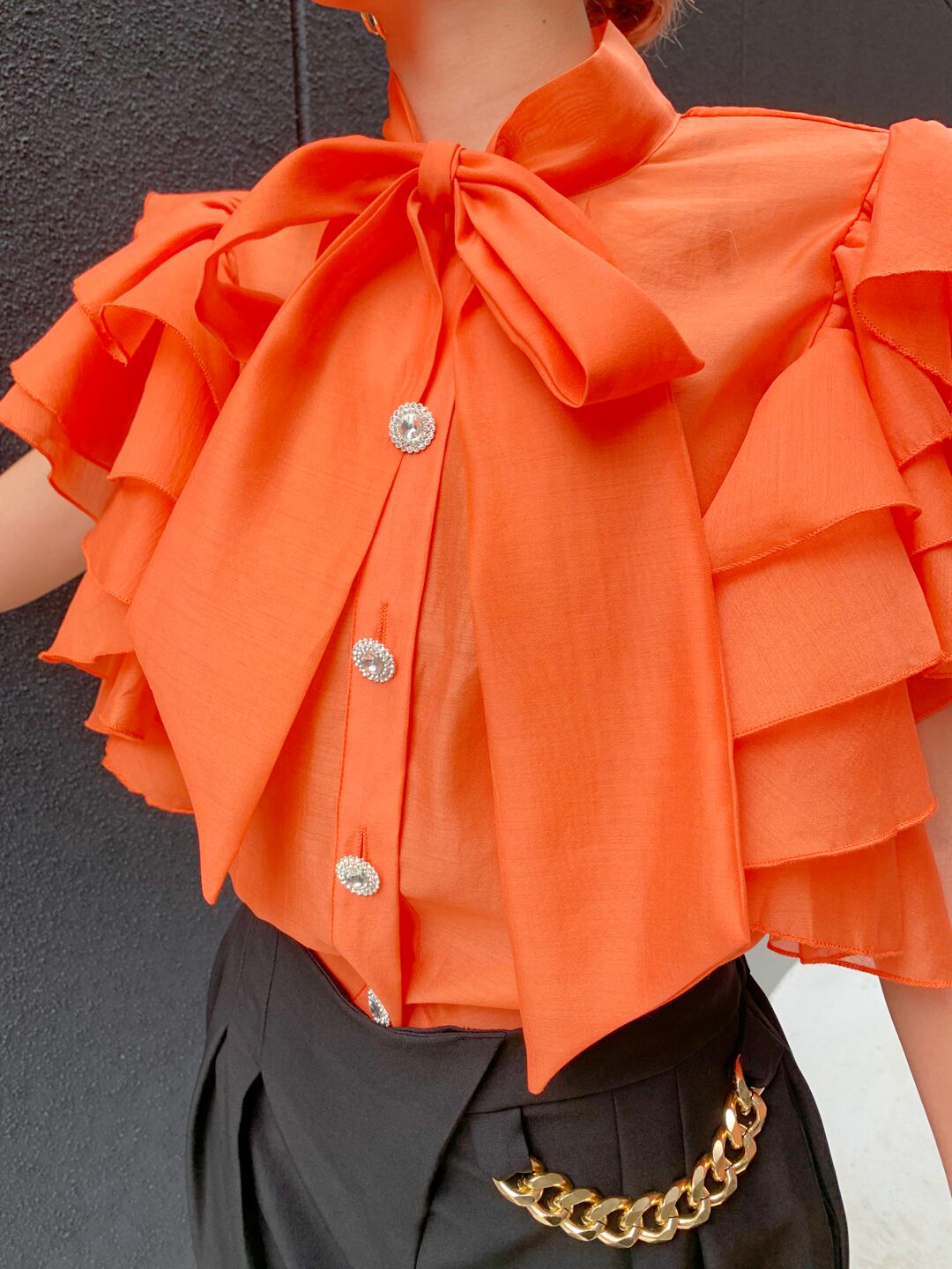 organdy chiffon frill sleeve bow-tie blouse トップス シャツ オーガンジー フリルスリーブ ボウタイ リボン