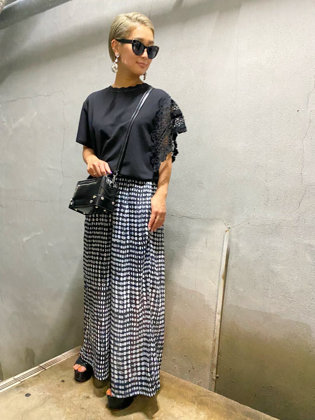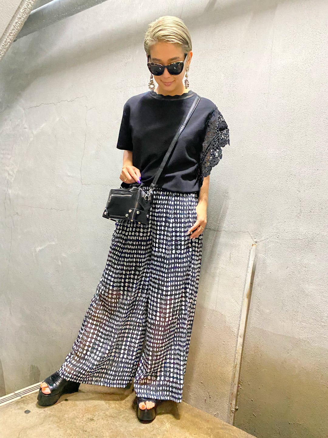 dot print chiffon long pants パンツ ドット ワイドパンツ シフォン シースルー