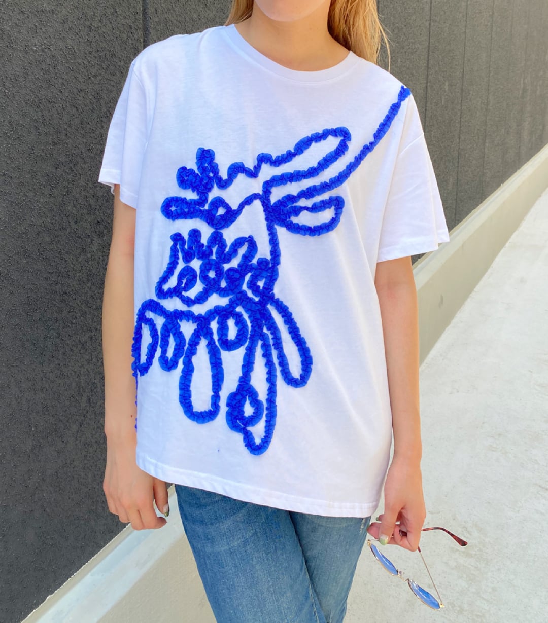 blue tape ribbon embroidery T-shirt Tシャツ トップス ブルー リボン 刺繍 デザイントップス