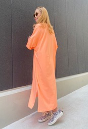 鮮やかなネオンカラーが目を惹くロングTワンピ
